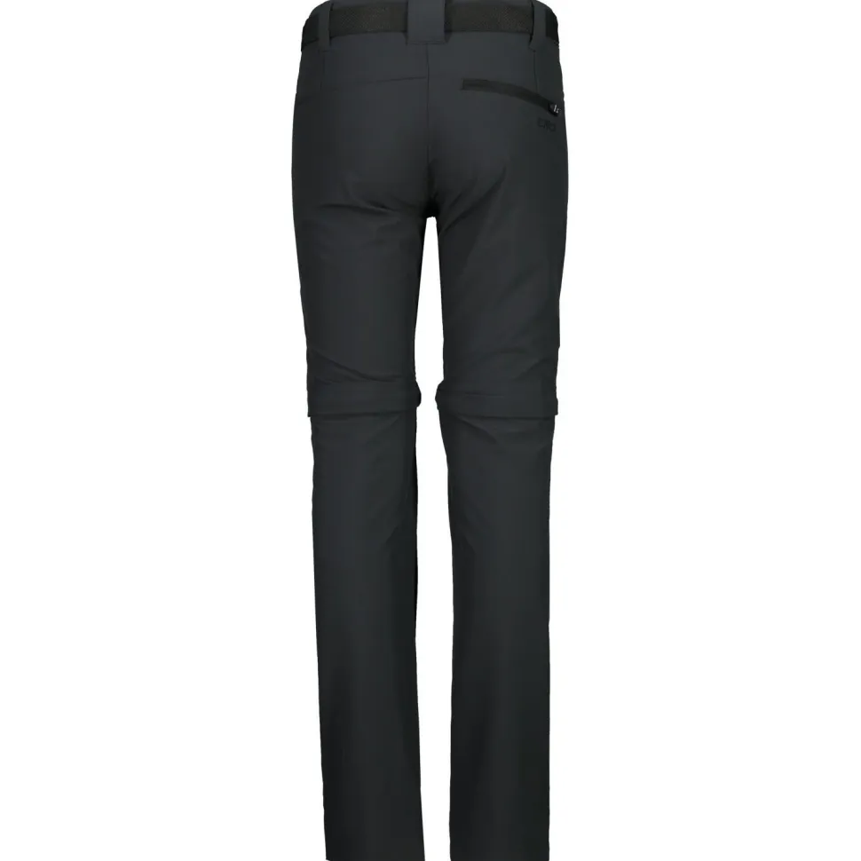 Die Kid’s Zip Off Pant with Belt von CMP eignet sich für aktive Trekking- und Wanderausflüge bei jedem Wetter. Egal, ob kühle oder hohe Temperaturen, die Hose ist durch ihre Funktionalität bestens geeignet. Der moderne und sportliche Look wird durch den Logoprint am Bein unterstrichen. Durch die Gürtelschlaufen und den integrierten Gürtel kann die Hose individuell angepasst werden. Dank der Materialzusammensetzung mit Elasthan ist sie stretchy und bietet ein hohes Maß an Funktionalität.