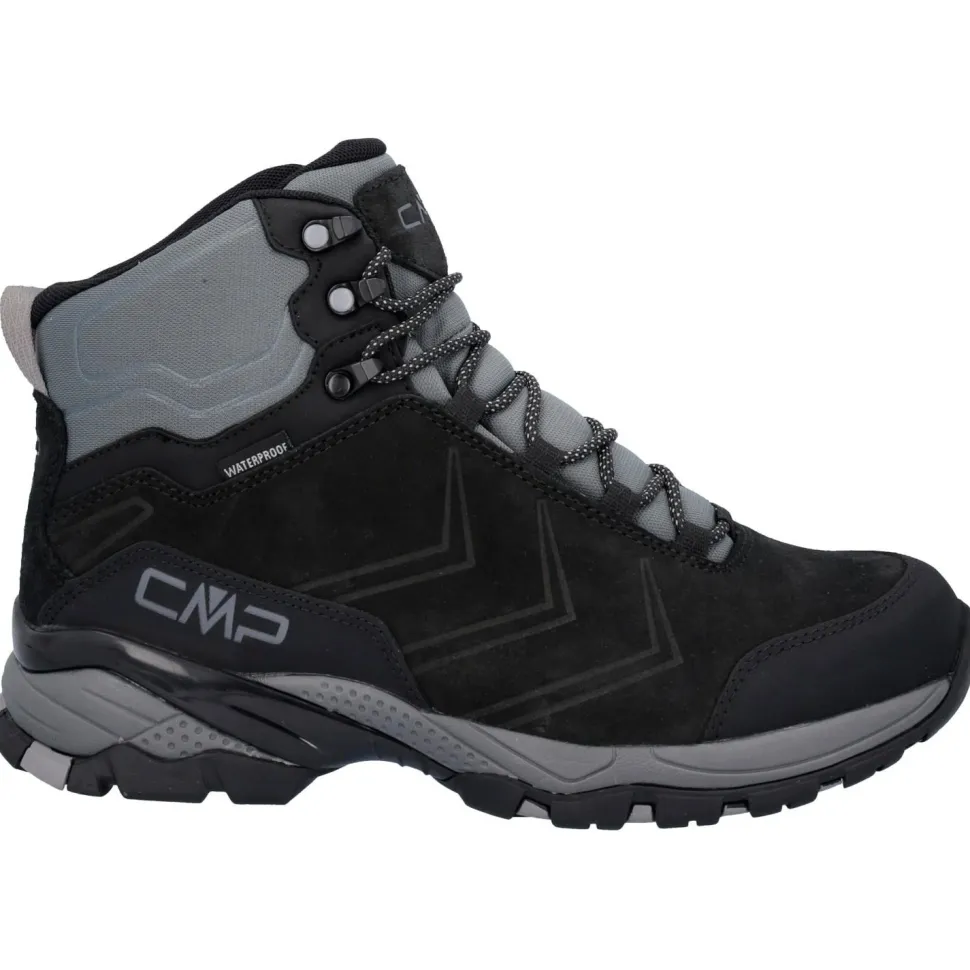 Die Melnick Mid Trekking Shoes Waterproof Wanderschuhe von CMP bestehen aus Veloursleder, Polyester und robusten Verstärkungen aus Gummi. Eine Kombination aus dämpfender EVA Sohle, TPU, Ortholite Brandsohle und griffiger Gummi CMP FullOn GRIP Sohle sorgt für ein angenehmes Laufgefühl im Gelände. Eine präzise Schnürung in zwei Zonen und praktische Anziehschlaufen an der Ferse machen die wetterfesten Wanderschuhe von CMP komplett.