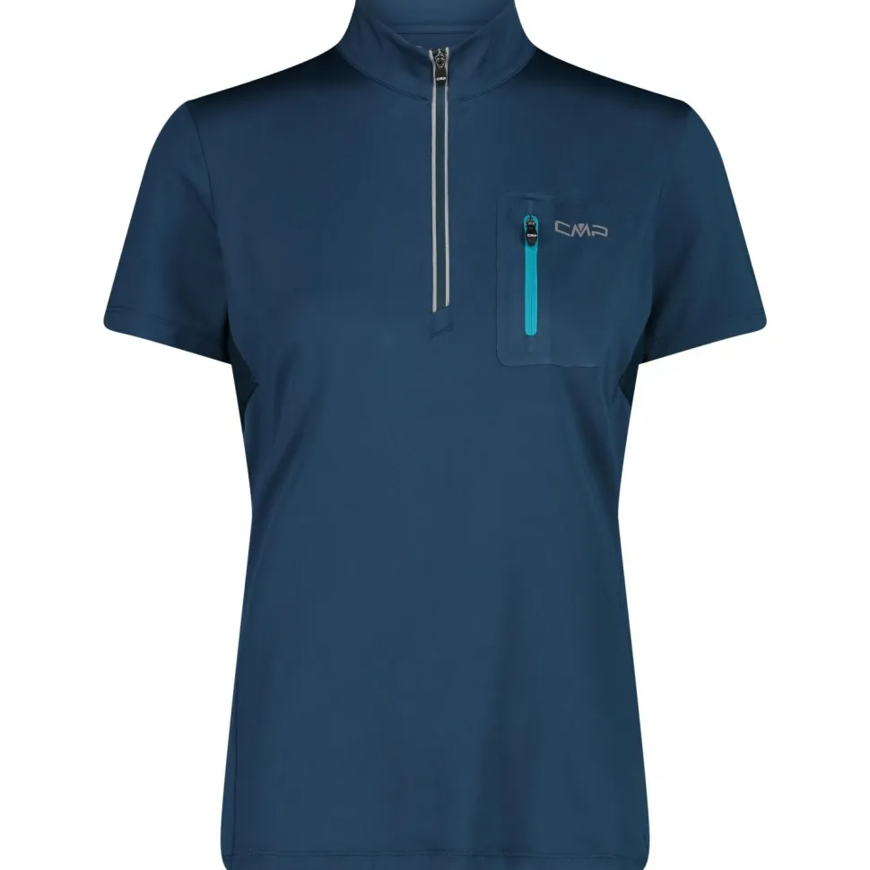 Mit einem dezenten Design und einer guten Passform überzeugt das Women’s Breast Pocket T-Shirt Free Bike von CMP. Dieses Radtrikot ist fürs Mountainbiken oder auch für Radreisen bestens geeignet. Das Material ist dabei atmungsaktiv und schnelltrocknend und sorgt so dafür, dass Feuchtigkeit schnell an die Umgebungsluft abgegeben wird. Das Trikot hat lediglich eine kleine Tasche am Rücken und eine Brusttasche mit Reißverschluss. Hierdurch ist das Tragen eines Rucksacks kein Problem.