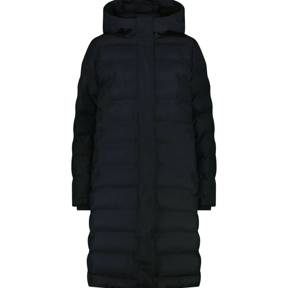 Mit dem Women’s Down Coat Fix Hood Mantel von CMP kannst Du den ganzen Tag beim Wandern, Schlittenfahren oder Skifahren im Schnee verbringen und er wird dennoch keine Feuchtigkeit eindringen lassen. Mit seiner Wassersäule von 10 000 mm und den getapten Nähten ist er komplett wasserdicht. Sollte er dennoch einmal feucht geworden sein, isoliert auch dann das Füllmaterial aus Kunstfaser noch effektiv. Kommst Du bei einem steilen Anstieg ins Schwitzen, kann der Women’s Down Coat Fix Hood Mantel die Feuchtigkeit gut nach außen abtransportieren. Der lange Schnitt und die elastischen Ärmelabschlüsse sorgen dafür, dass weder Kälte noch Schnee eindringen kann.