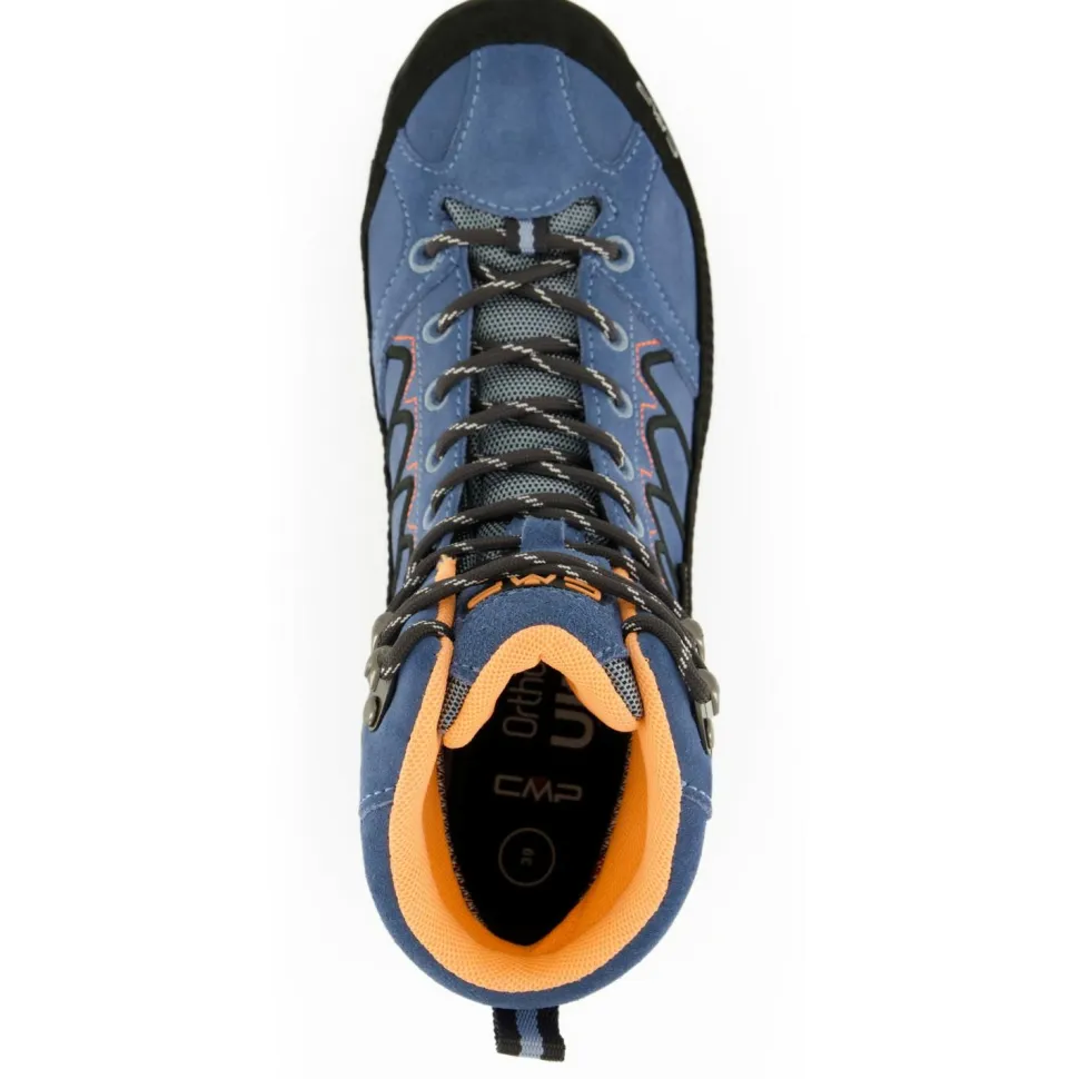 Die Women’s Moon Mid Trekking Shoes Waterproof Wanderschuhe sind rundum verstärkt, so dass Steine, Geröll und Wurzeln den Schuhen nichts anhaben kann. Zusätzlich verstärkt CMP die Wanderschuhe im Zehenbereich und an der Ferse. Eine Kombination aus Veloursleder und Polyester macht die wasserdichten Schuhe angenehm weich und strapazierfähig zugleich. Dämpfende EVA Zwischensohle und Ortholite Brandsohle machen das Tragegefühl beim Wandern perfekt.