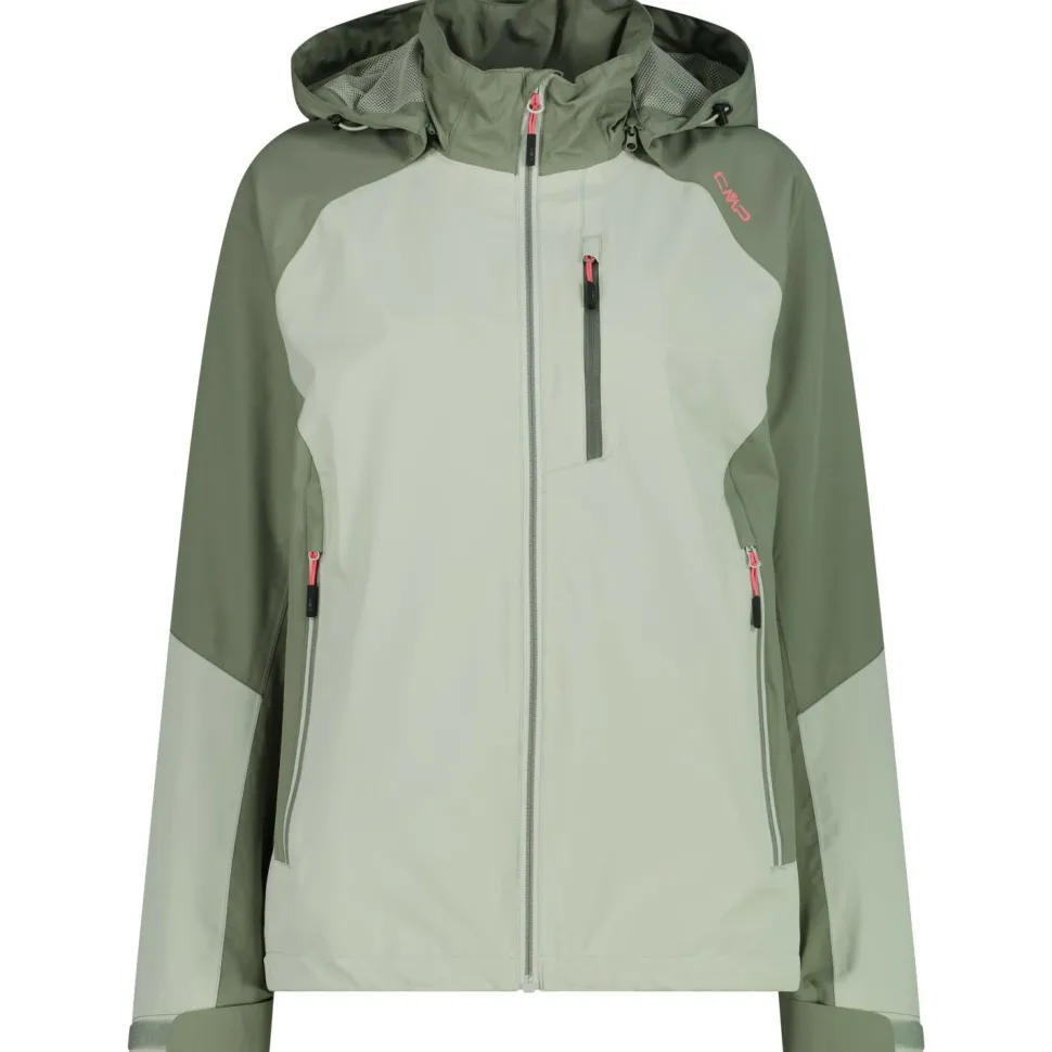 Doch auch bei der restlichen Ausstattung muss sich die Women’s 2 Layer Jacket Fix Hood von CMP nicht verstecken. Die Kapuze bietet Dir bei Bedarf unkompliziert zusätzlichen Schutz vor den Elementen. Darüber hinaus ist sie verstellbar und sitzt somit immer sicher und bequem. Durch Klettverschlüsse an den Ärmeln und einen Kordelzug im Saum kannst Du die Jacke bei Bedarf verengen und somit für einen guten Abschluss sorgen. In drei geräumigen Taschen finden zusätzlich allerlei Utensilien problemlos Platz. Praktisch: Die Taschen lassen sich mittels Reißverschluss sichern.