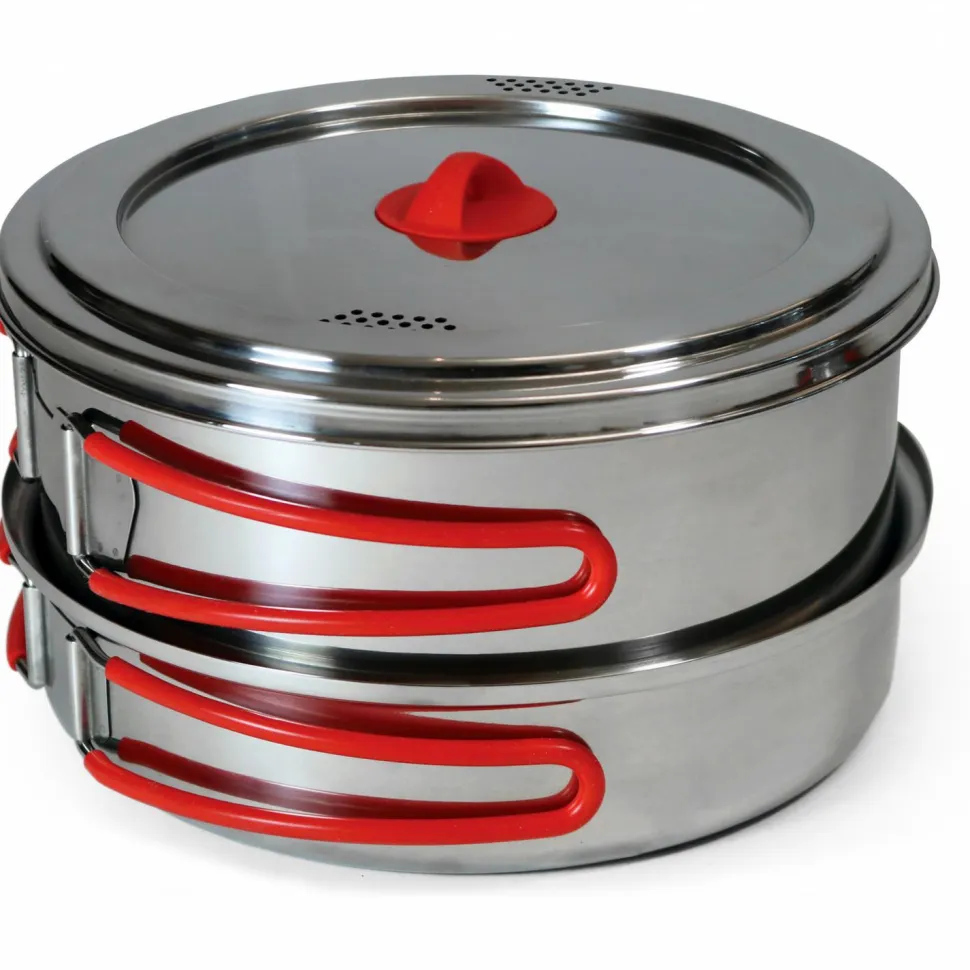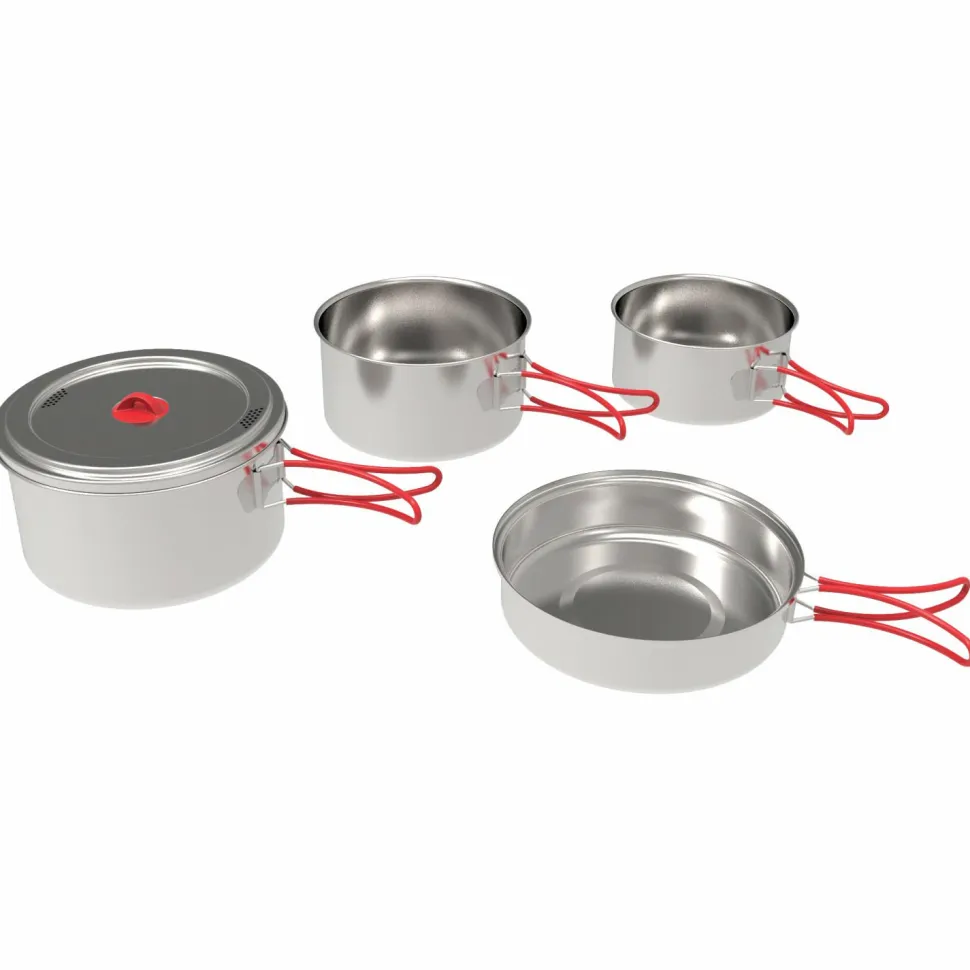 Das komplette Set besteht aus rostfreiem Edelstahl für direkte Wärmeleitung und einen unverfälschten Geschmack. Drei Töpfe unterschiedlicher Größe und eine Pfanne machen auch weit mehr möglich als Dosenraviolie und Co – gekocht wie gebraten.