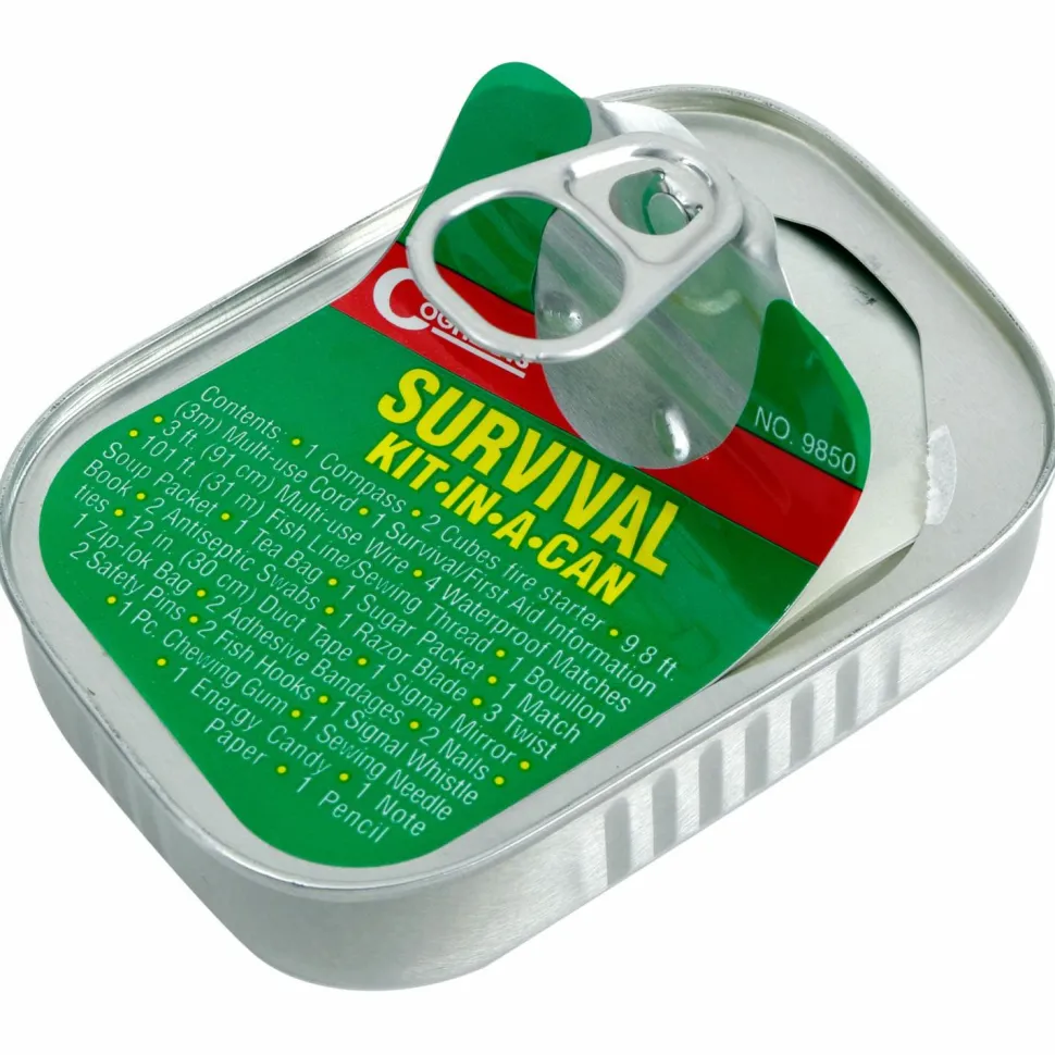 Natürlich sollte jeder Wanderer ein Erste Hilfe Set für kleinere Verletzungen dabei haben. Ist man länger auf Tour, vielleicht noch alleine und abseits der ausgetretenen Pfade, empfiehlt sich auch die Zusammenstellung eines persönlichen Notfall Paketes. Ein solches Survival Kit liefert Coghlans an dieser Stelle und packt einen Großteil allgemein wichtiger Gegenstände in ein Paket. Das Set beinhaltet: Kompass, Feuerstarter, Mehrzweckschnur, Draht, 4 wasserfeste Zündhölzer, Angelschnur, Trockensuppe, Teebeutel, Zuckerpäckchen, Zündholzschachtel, 2 antiseptische Tücher, Rasierklinge, Klebeband, Signalspiegel, Bandagen, Beutel, 2 Nägel, 2 Reißnägel, 2 Angelhaken, Signalpfeife, Kaugummi, Nähnadel, Energiezucker, Papier, Bleistift, Erste Hilfe Anleitung.