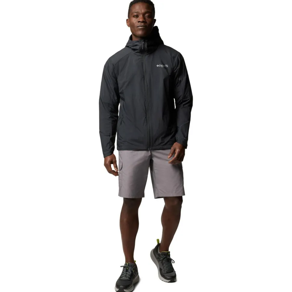 Für sportliche Outdooraktivitäten bietet der Loop Trail II Windbreaker von Columbia eine optimale Mischung aus Tragekomfort und Wetterschutz. Die Windjacke ist nicht nur windundurchlässig, sondern schützt auch bei Regen mit ihrer wasserabweisenden Omni-Shield Oberflächenbehandlung. Gleichzeitig bietet die Omni-Shade Technologie dauerhaften UV-Schutz mit Lichtschutzfaktor UPF 50. Die Windjacke ist mit hohem Kragen und Kapuze ausgestattet. Außerdem lässt sie sich bequem in der eigenen Jackentasche verstauen. Mit verlängerter Rückenpartie, elastischen Bündchen und reflektierenden Details ergänzt Columbia die funktionelle Windjacke.