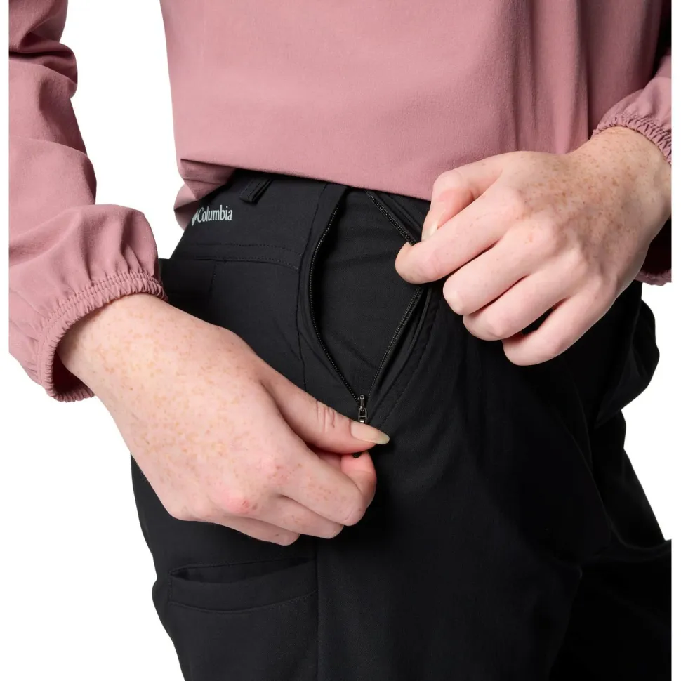 Beim Wandern und auf Reisen begeistert die funktionelle Women’s Leslie Falls Pant II Trekkinghose von Columbia durch tollen Tragekomfort und erstklassige Bewegungsfreiheit. Dafür sorgt eine stretchy Materialmischung mit Nylon und Elasthan. Das funktionelle Gewebe ist angenehm leicht, strapazierfähig und atmungsaktiv. Außerdem trocknet es zügig und ist ausgesprochen pflegeleicht.