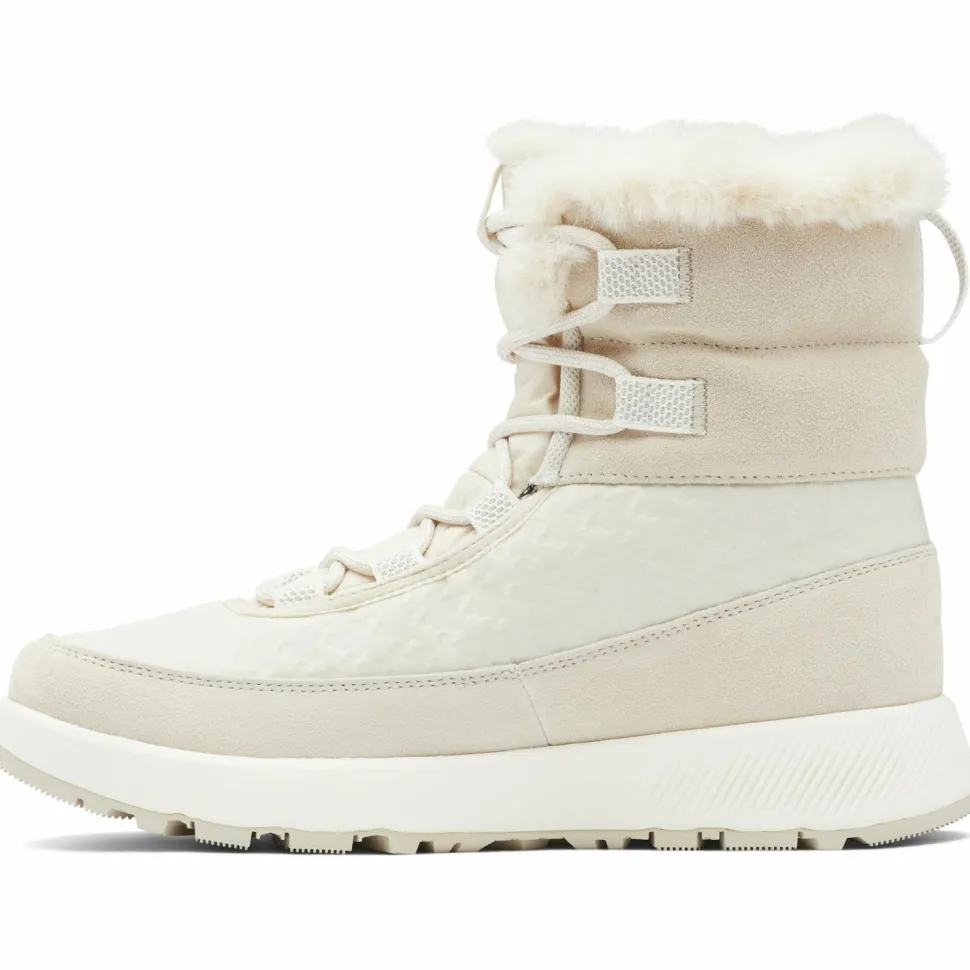 Die Women’s Slopeside Peak Luxe Winterschuhe von Columbia eignen sich hervorragend für die kalte Jahreszeit. Frostbeulen an den Zehen gehören mit den Schuhen der Vergangenheit an, denn die wärmenden und isolierenden Eigenschaften der hochwertigen Materialien verhindern das Eindringen von Kälte. Zudem wird Feuchtigkeit, von Schnee oder Regen schnell in die Schranken gewiesen, wenn diese versucht sich einen Weg ins Innere der Schuhe zu verschaffen. Damit die Winterschuhe perfekt sitzen und sich individuell an die Füße anpassen lassen, ist eine Schnürung angebracht.
