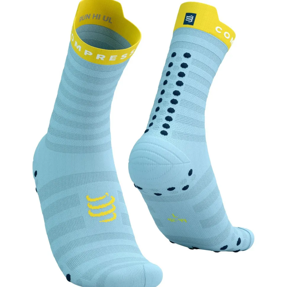 Wenn es auf der Straße heiß hergeht, solltest Du ein gutes Paar Socken tragen. Mit den Pro Racing Socks V4.0 Ultralight Run High von Compressport, die für eine optimale Thermoregulierung beim Training und bei Rennen an heißen Tagen sorgen, kannst Du nichts falsch machen.