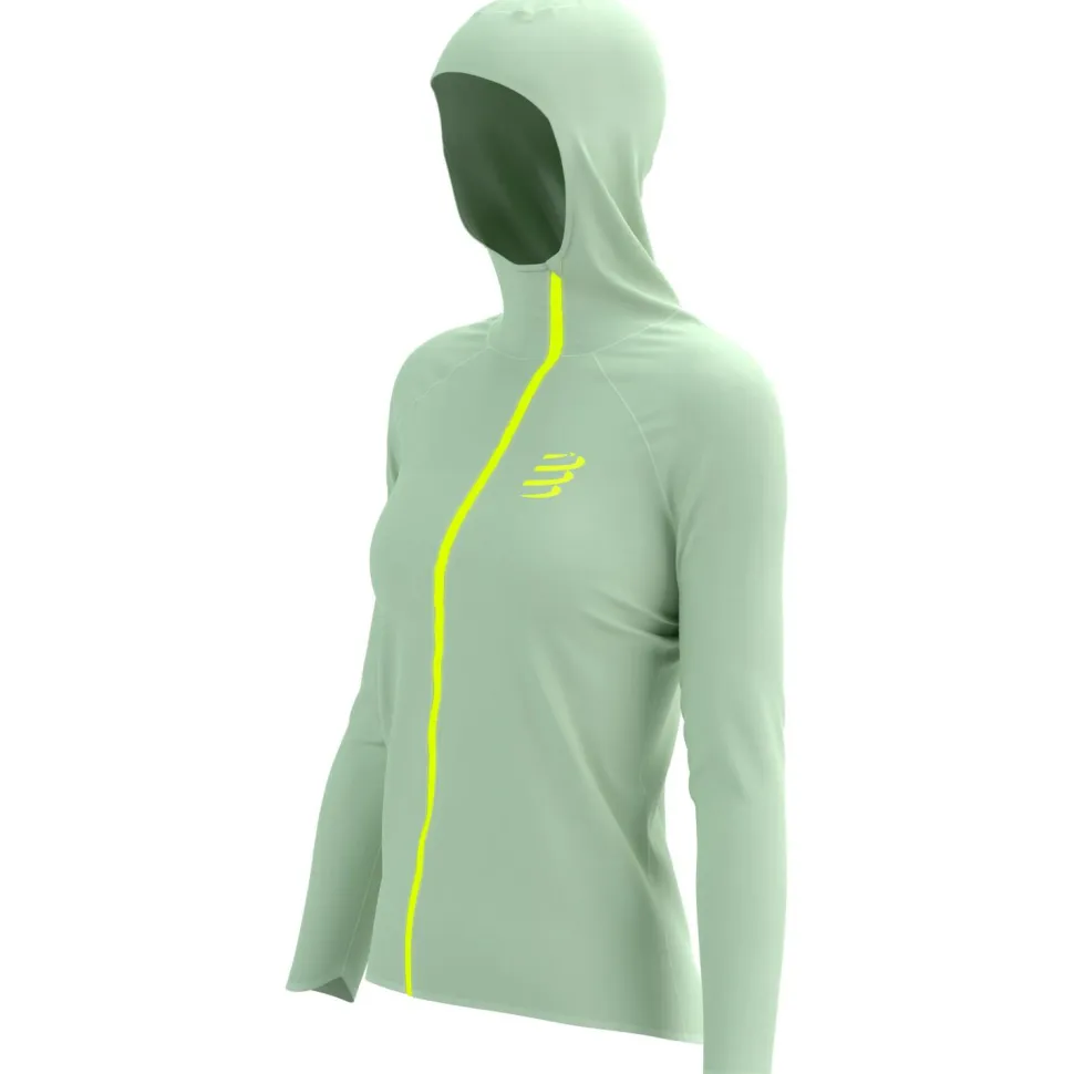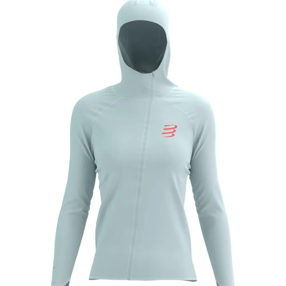 Das Women’s Hurricane Waterproof 10/10 Jacket von Compressport eignet sich für sportliche Aktivitäten in der Natur, wenn das Wetter verrückt spielt. Die Jacke ist atmungsaktiv, schnelltrocknend, stretchy und wasserdicht. Das Material, das sich ideal an jede Körperform, auch über einen Rucksack, anpasst und dabei absolute Bewegungsfreiheit garantiert, ist ein absolutes Highlight.
