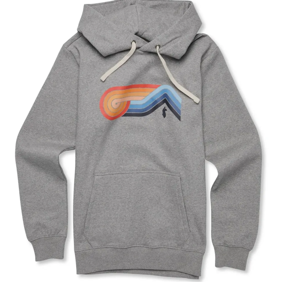 Der Melting Sunset Pullover Hoodie Hoodie von Cotopaxi kann Dich in Deinem Alltag begleiten, er kann aber auch beim Bouldern getragen werden. Sein Materialmix aus Bio-Baumwolle und recyceltem Polyester ist besonders abriebfest und hält Kontakt mit Fels oder Hallenwand gut aus. Die elastischen Bündchen an Saum und Ärmelabschlüssen sorgen für eine sichere Passform, auch bei ausladenden Bewegungen.