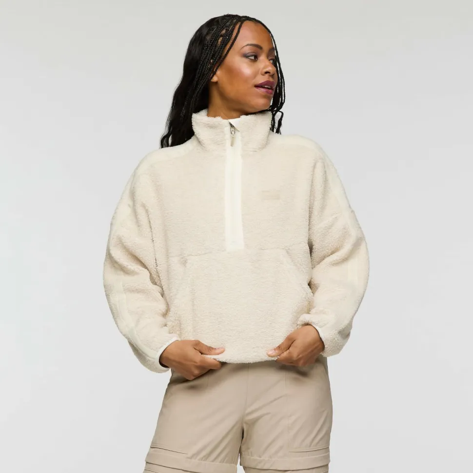 Der Women’s Bacano Fleece Pullover Fleecepullover von Cotopaxi hat nicht nur ein besonders kuscheliges Tragegefühl, er sieht dabei auch noch gut aus! Mit seinem oversized Schnitt und dem halblangen Frontreißverschluss vorne verleiht er Dir den sportlich-lässigen Flair der 80er Jahre.
