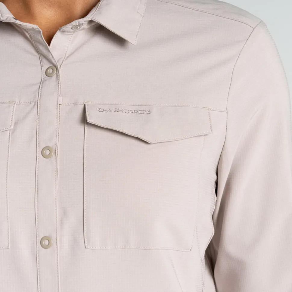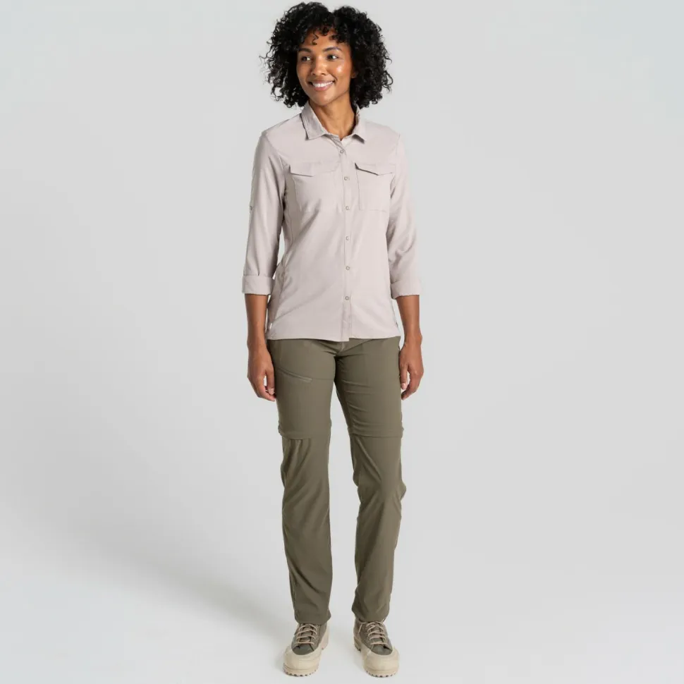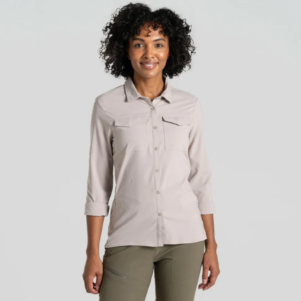 Wandern, Trekking und eine generell aktive Freizeitgestaltung sind mit der Women’s Nosilife Pro Langarm Bluse V von Craghoppers kein Problem. Diese Bluse ist sehr angenehm zu tragen und engt Dich aufgrund des nahezu geraden Schnitts und des elastischen Materials nicht ein. Zusätzlich ist das Material aber auch atmungsaktiv und schnelltrocknend. Praktisch: Die NosiLife-Behandlung hält lästige Stechmücken und Zecken zuverlässig fern.