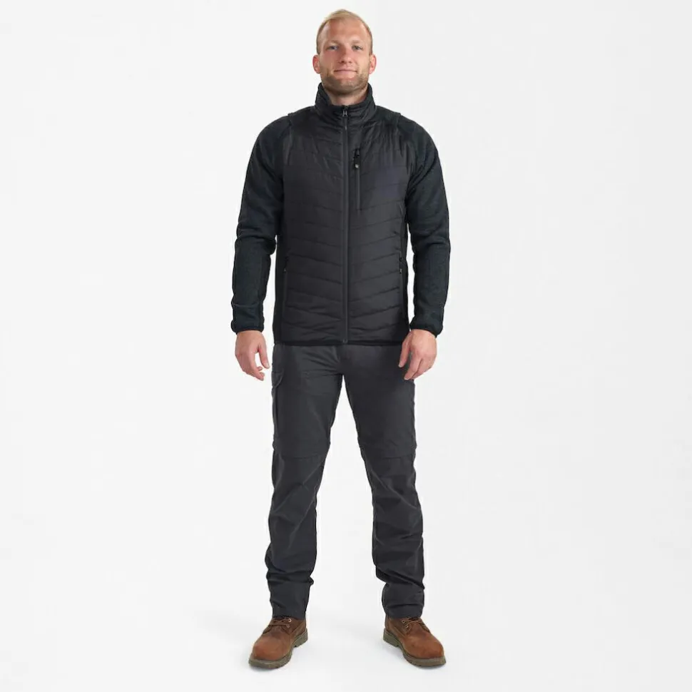 Deerhunter stattet die Jacke aus Polyester mit elastischen Bündchen und hohem Kragen aus. Die Ärmel können bei Bedarf abgenommen werden, so dass aus der Outdoorjacke im Handumdrehen eine warme Weste wird. So ergeben sich beim Wandern und Jagen besonders viele praktische Einsatzmöglichkeiten für die Moor Zip-Off Jacket.