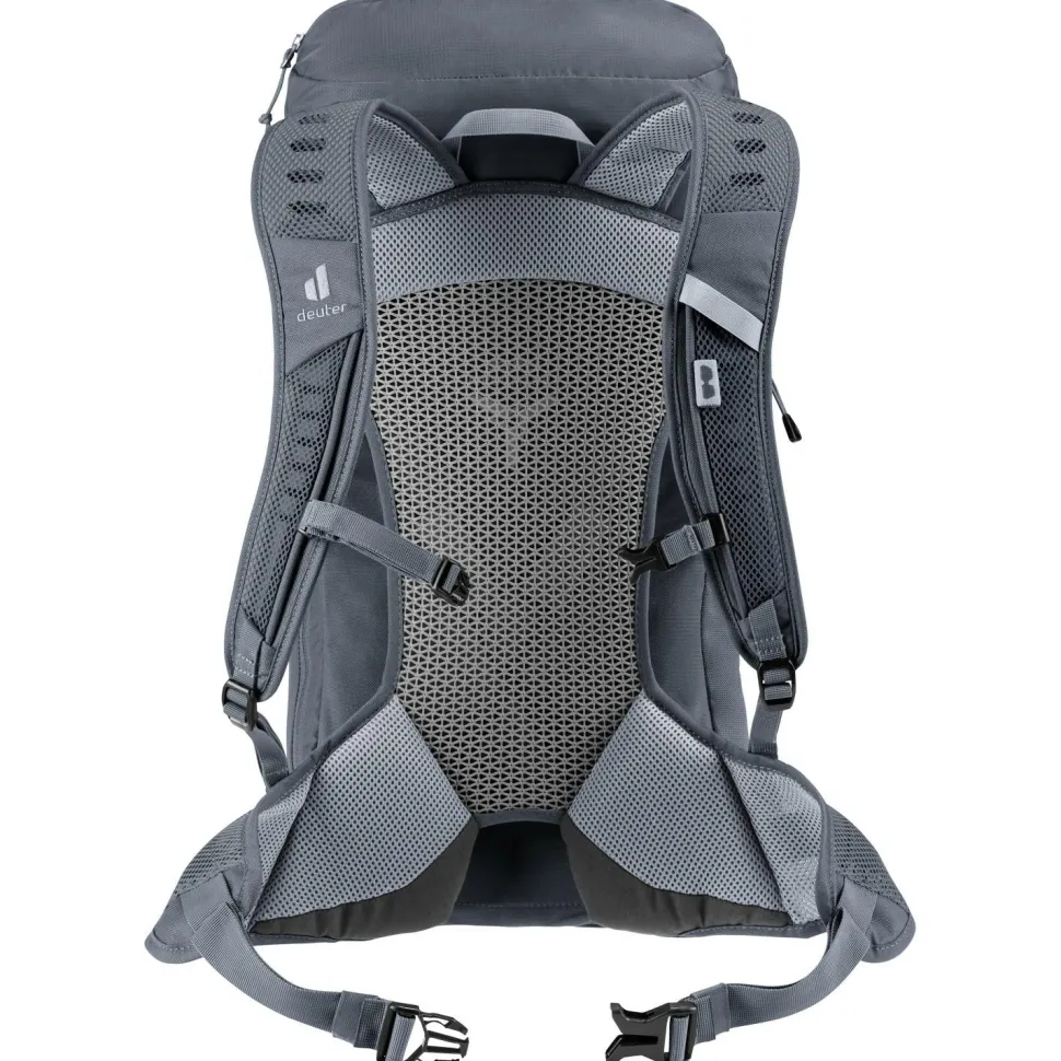 Du suchst einen leichten und bequemen Rucksack für Tagesausflüge? Der AC Lite 24 von deuter ist ein hervorragender Begleiter für Wanderungen oder Tagestrips in die Stadt.Das geringe Gewicht wird über einen ergonomisch gepolsterten Hüftgurt, den elastischen Federstahlrahmen und den höhenverstellbaren Brustgurt gut verteilt. Durch das deuter-Aircomfort Tragesystem mit dem Netzeinsatz am Rückenteil ist Dein Rücken gut belüftet und der Rucksack fühlt sich noch leichter an. Trotz seiner Leichtigkeit bietet der AC Lite 24 mit seinen vielfältigen Fächern und Halterungen Platz für die Dinge, die Du auf der Tagestour brauchen könntest.Auch für schlechtes Wetter ist der AC Lite 24 mit einer abnehmbaren Regenhülle gut ausgestattet. Der Umwelt zuliebe wurde bei dem Hauptmaterial auf recycelte Bestandteile geachtet.