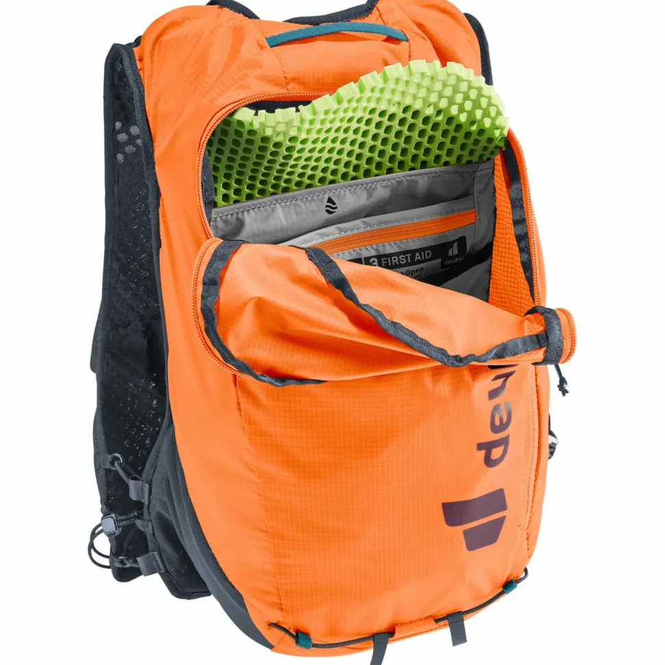 Der Rucksack ist aus einem reißfesten Ripstopgewebe aus recyceltem Polyamid gefertigt und mit dem bluesign Label für nachhaltige Produktion zertifiziert. Mit 13 Litern Stauraum packt das Hauptfach alle wichtigen Items weg. Ergänzend gibt es ein Stretchinnenfach, ein Wertsachenfach, zwei elastische Seitentaschen und eine Tasche fürs Smartphone oder GPS am Schulterträger. Die Stockhalterung ist vorne am Schultergurt positioniert und ist einfach zugänglich, ohne dass Ihr aus Eurem Laufrhythmus kommt. Das deuter Lite Tragesystem ist auf schnelle Touren in schwierigem Gelände ausgelegt, sorgt mit seinen extra breiten Schulterträgern mit westenähnlichem Sitz für Komfort, liegt wunderbar bequem am Rücken und ist durch den Lageverstellriemen individuell anpassbar. Wenn Ihr möchtet, könnt Ihr zudem den Rückenschaum entfernen, was den Ascender 13 nochmals um 10% seines Eigengewichts reduziert. Prima!