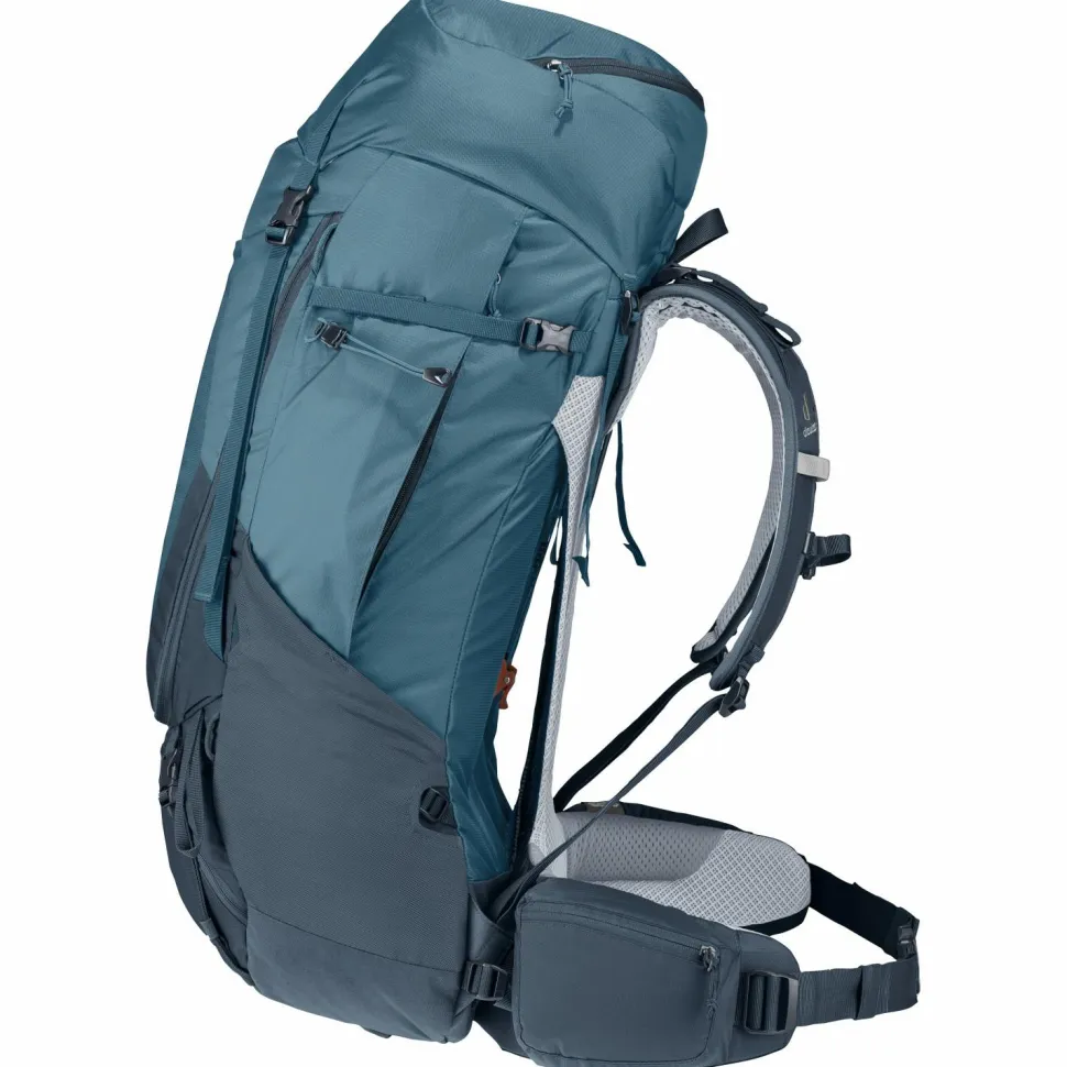 Backpacker, die hohe Anforderungen an ihren Trekkingrucksack stellen und Wert auf Nachhaltigkeit legen, sind mit dem Futura Air Trek 60+10 von deuter bestens bedient. Ein flexibler Rundprofilrahmen aus dauerelastischem Federstahl lässt eine maximale Kraftübertragung auf die weichen Variflex-Hüftflossen zu. Die hochflexiblen, ergonomisch gepolsterten Flossen lassen sich durch die Pull-Forward-Funktion schnell und einfach in die perfekte Position bringen. Das VariSlide-System garantiert die optimale Rückenlängenanpassung im Handumdrehen.