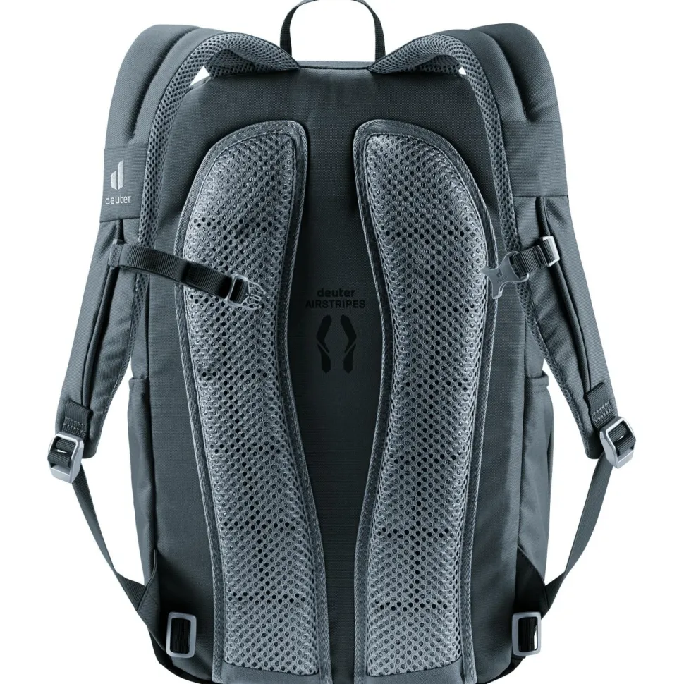 Der Daypack verfügt über zwei elastische Seitentaschen aus Mesh-Gewebe, welche sich ideal für den Transport von Trinkflaschen eignen. Die anatomisch vorgeformten Schulterträger sorgen in jeder Situation für hohen Tragekomfort. Durch das atmungsaktive Airstripes Rückensystem wird Feuchtigkeit gezielt nach außen hin abgeleitet. Zwei Innenfächer für Wertsachen und Dokumente machen den deuter Gogo 25 zur ersten Wahl für Deinen nächsten Urlaub.
