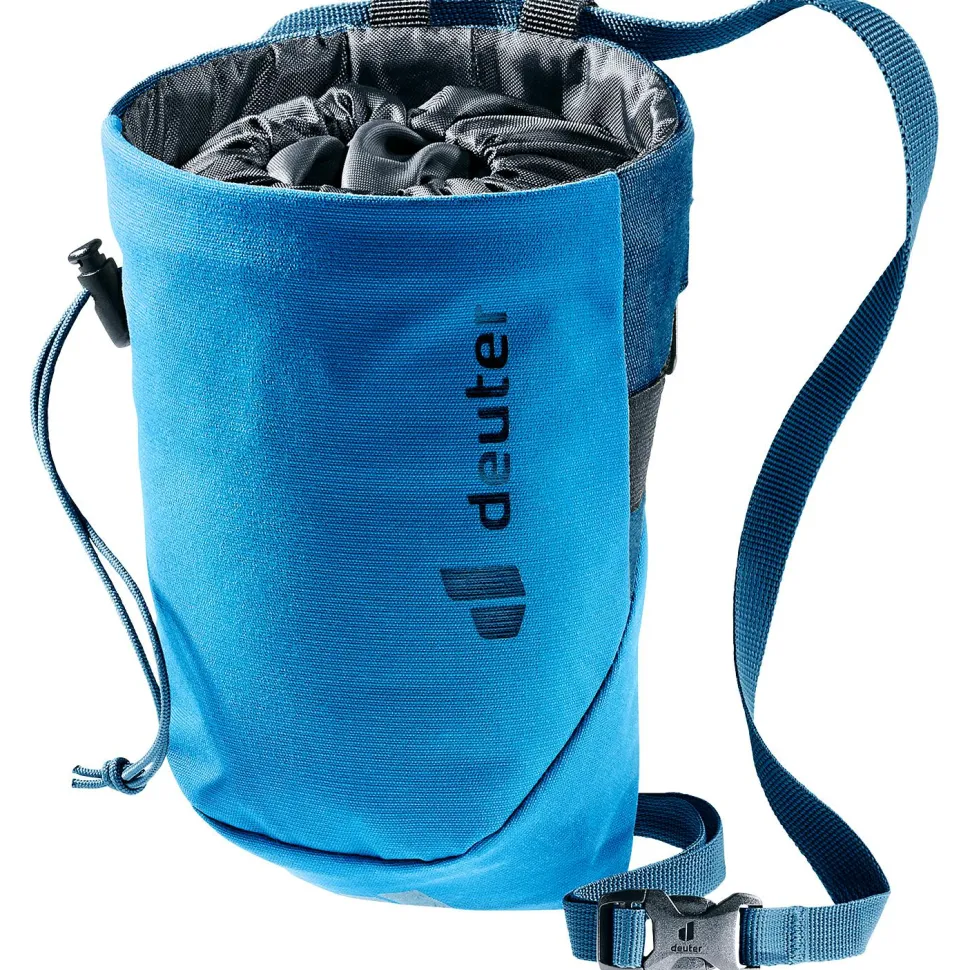 Im Gravity Chalk Bag II L Chalkbag von deuter lässt sich auch eine größere Menge Chalk bequem transportieren. Die große und versteifte Öffnung mit integriertem Kordelzug und ein leichtes Innenfutter aus Fleece sorgen dabei für angenehmes Chalken und gleichmäßige Chalk-Abgabe. Zwei praktische Taschen mit Reißverschluss auf der Rückseite und zwei seitliche Bürstenhalter ergänzen den großen deuter Chalkbag.