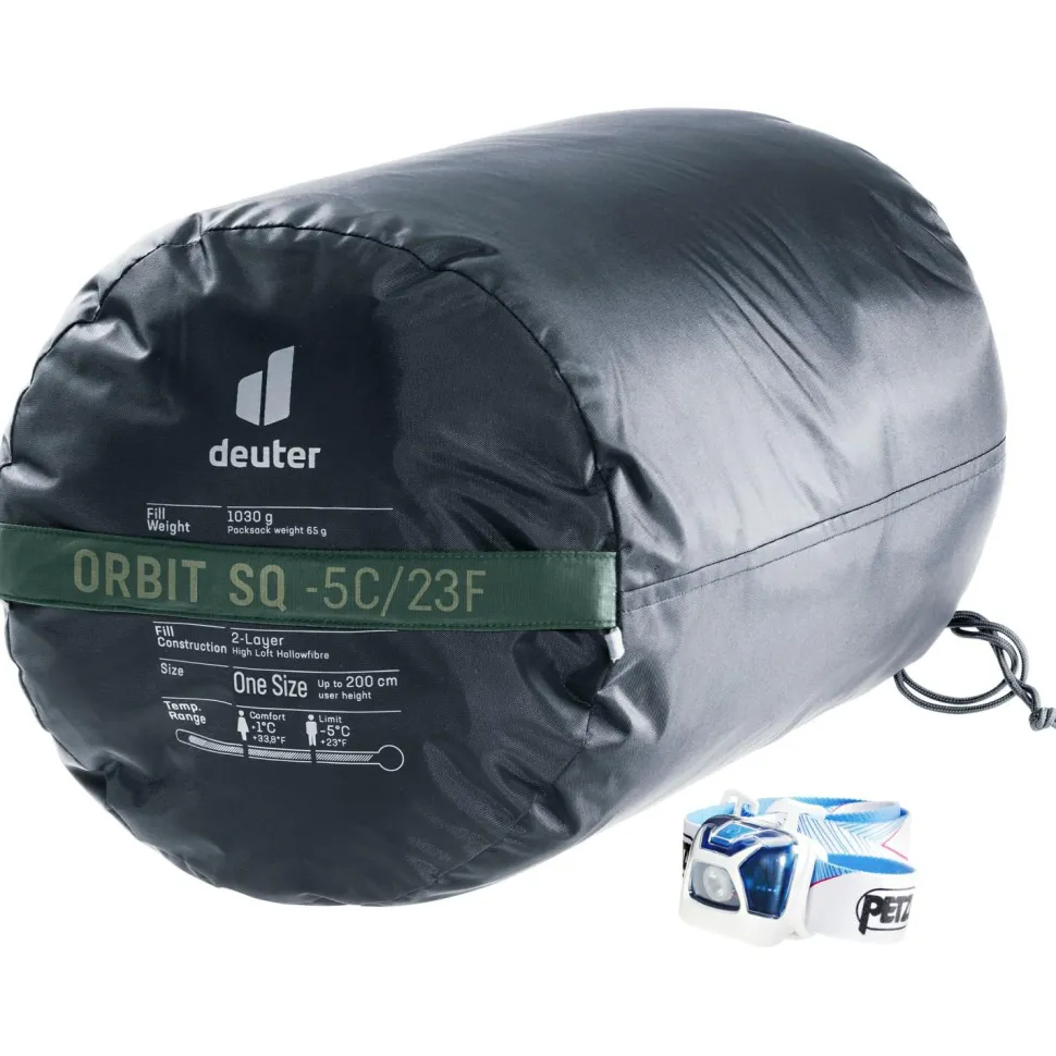 Der Orbit SQ -5°C von Deuter ist ein koppelbarer Kunstfaserschlafsack für Outdoorfans, die das Platzangebot eines Deckenschlafsacks nicht missen wollen. Mit seiner High Loft Hohlfaserfüllung sorgt er für viel Wärme bei moderatem Gewicht und guter Strapazierfähigkeit. Dank ihrer gleichmäßigen Verteilung im ganzen Schlafsack bietet die Füllung eine Rundum-Isolierung ohne Kältebrücken. Perfekt ergänzt wird sie durch das nahtlose Ripstop-Außenmaterial, das ebenfalls die Temperaturleistung verbessert und zudem vor eindringender Nässe schützt.