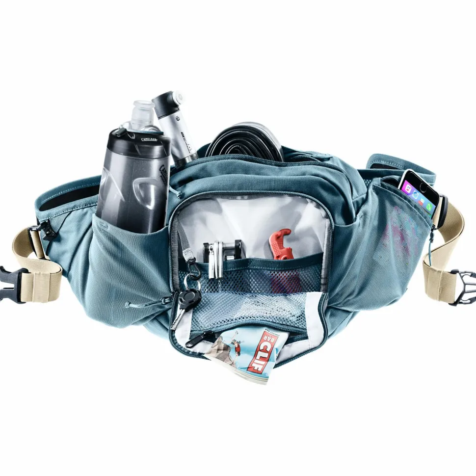 Die Hüfttasche ist mit einer praktischen Flaschenhalterung konstruiert und bietet Dir ebenfalls Platz für eine Trinkblase. Durch die verstaubare Halterung für Protektoren und die bequeme Passform ist die deuter Pulse 5 Pro die erste Wahl für Deine nächste Radtour im Gelände.