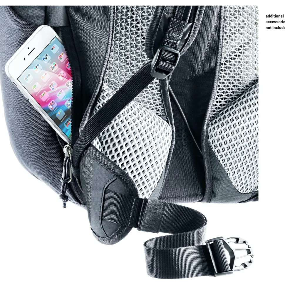 Die beiden elastischen Seitentaschen eignen sich ideal für den Transport von Trinkflaschen oder Bekleidung. Reflektierende Elemente sowie die praktische Brillenhalterung am Schulterträger machen den Race Air 14 + 3 Bike-Rucksack von deuter zur ersten Wahl für Deine nächste Radtour.