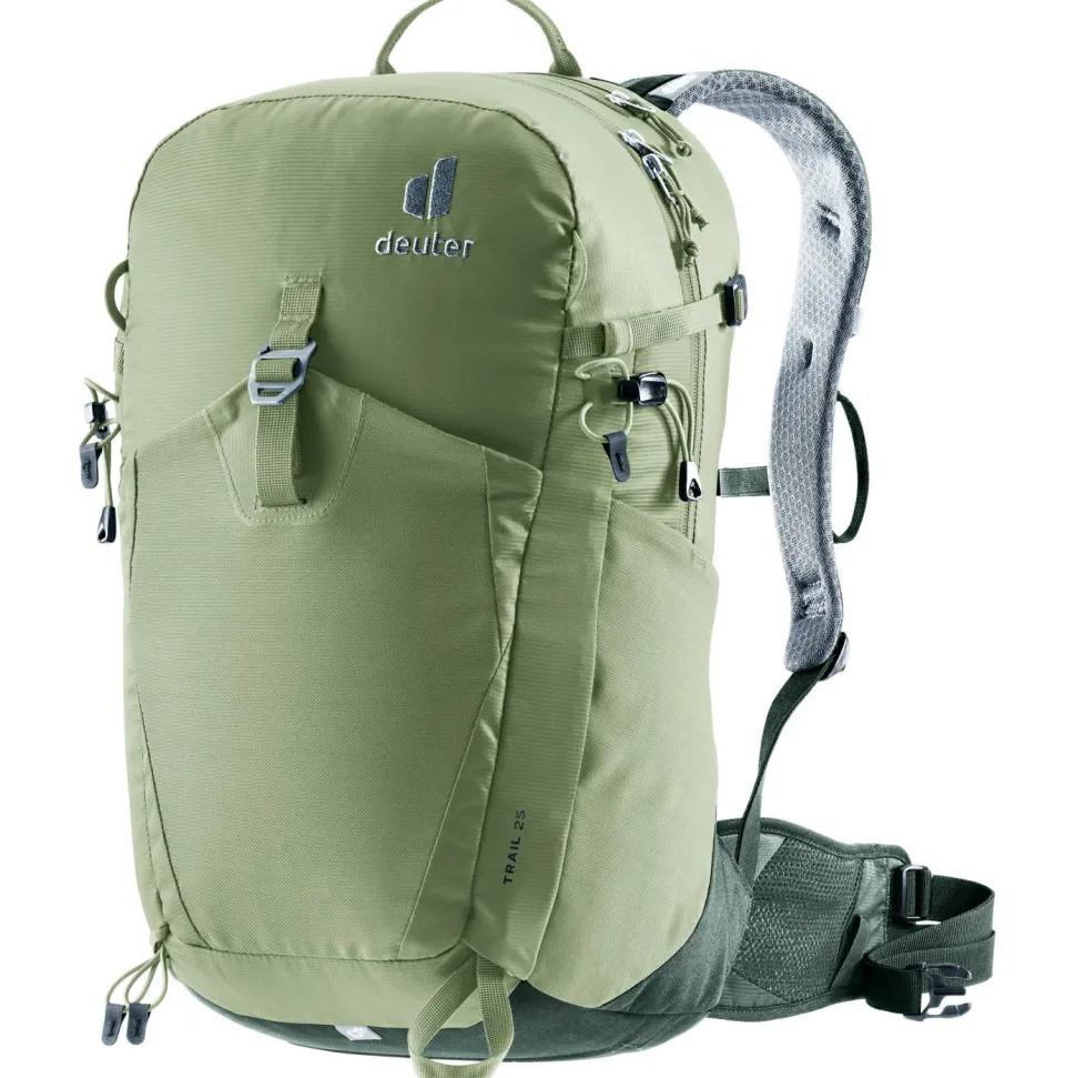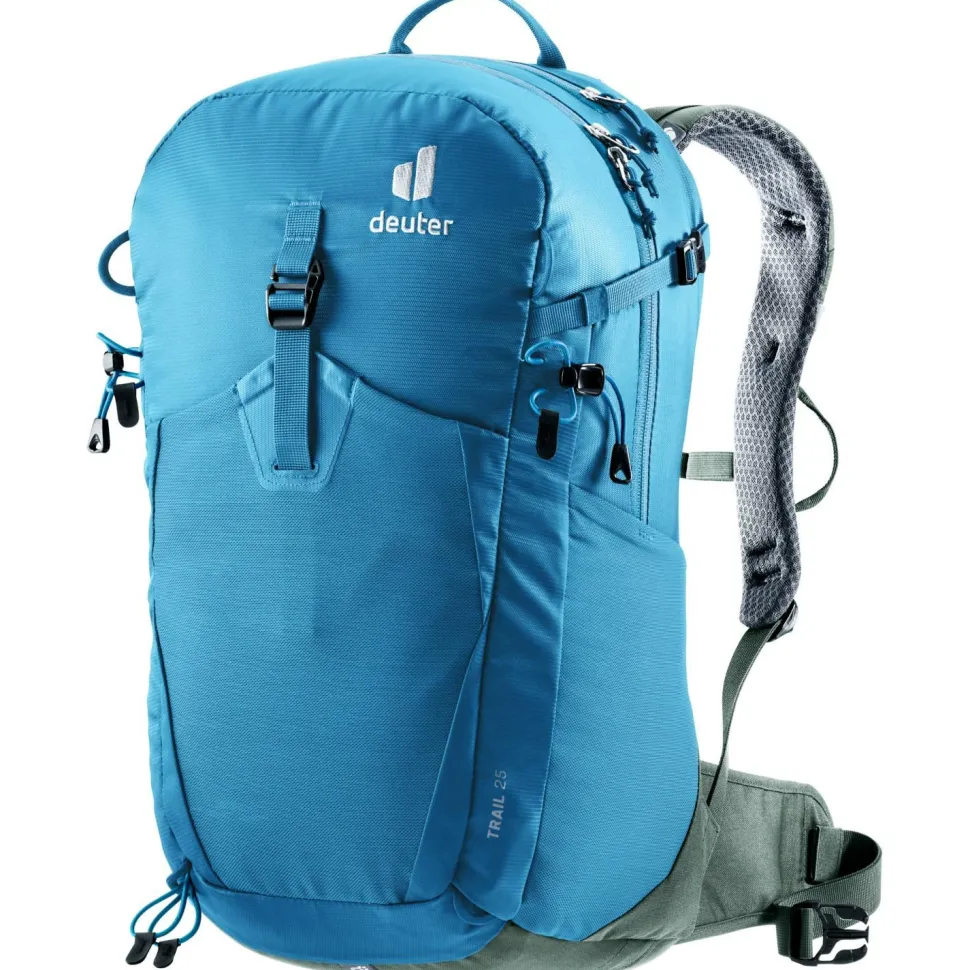 Durch das komfortable Tragesystem wird Deine nächste Bergtour mit dem deuter Trail 25 zu einem vollen Erfolg. Der leichte Wanderrucksack wird mit recycelten Materialien hergestellt und eignet sich ideal für den Bergsport. Die Schulterträger sorgen in Kombination mit dem robusten U-Rahmen im Rückenbereich beim Wandern für eine optimale Lastenverteilung. Dank der elastischen Halterung kannst Du Pickel oder Wanderstöcke außen am Tourenrucksack anbringen.