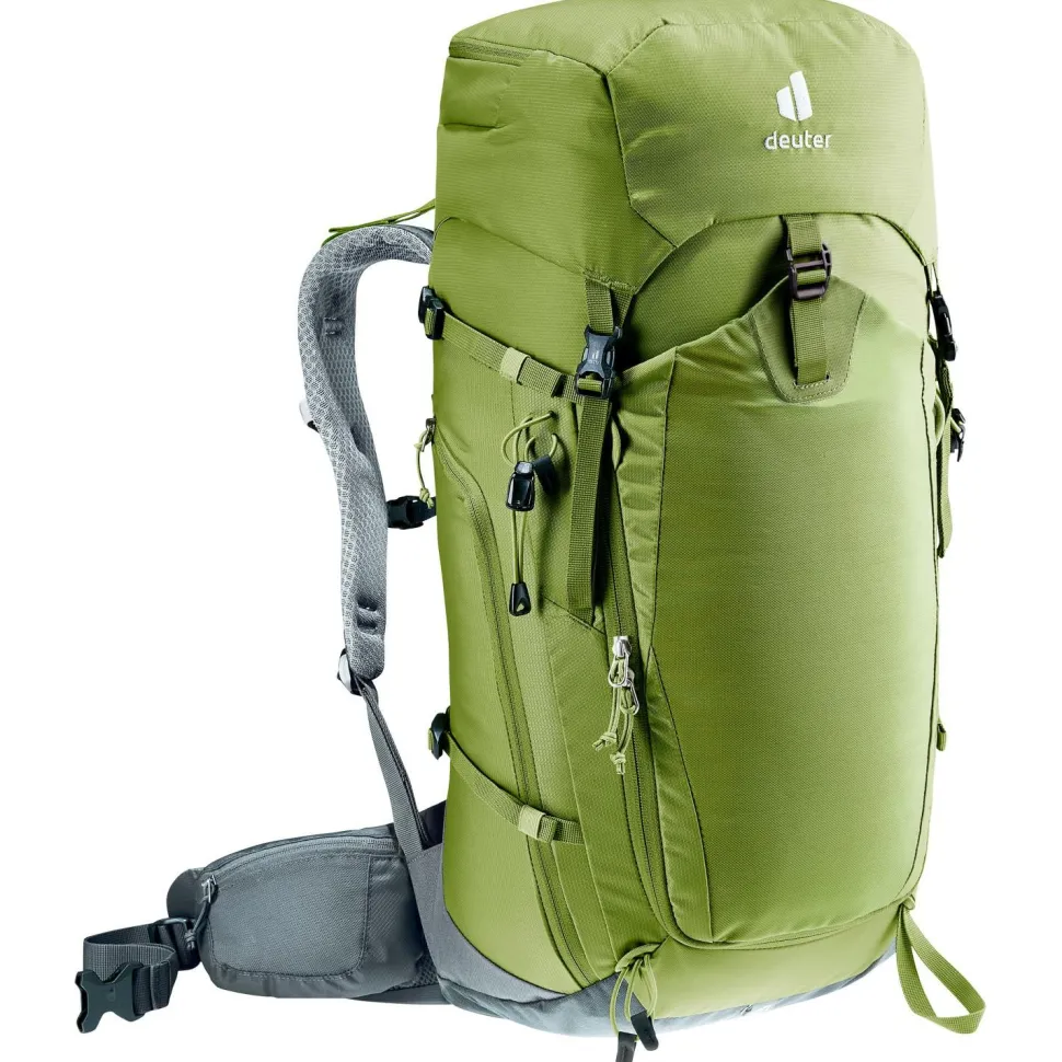 Der Wanderrucksack ist mit dem atmungsaktiven Airstripes System konstruiert, welches Feuchtigkeit durch das luftige Mesh-Gewebe rasch nach außen hin ableitet. Die Schulterträger sind durch die Active Fit Konstruktion beweglich gelagert und engen Dich beim Wandern und Klettern am Berg nicht ein. Mit dem deuter Trail Pro 36 wird Deine nächste Bergtour zu einem vollen Erfolg.