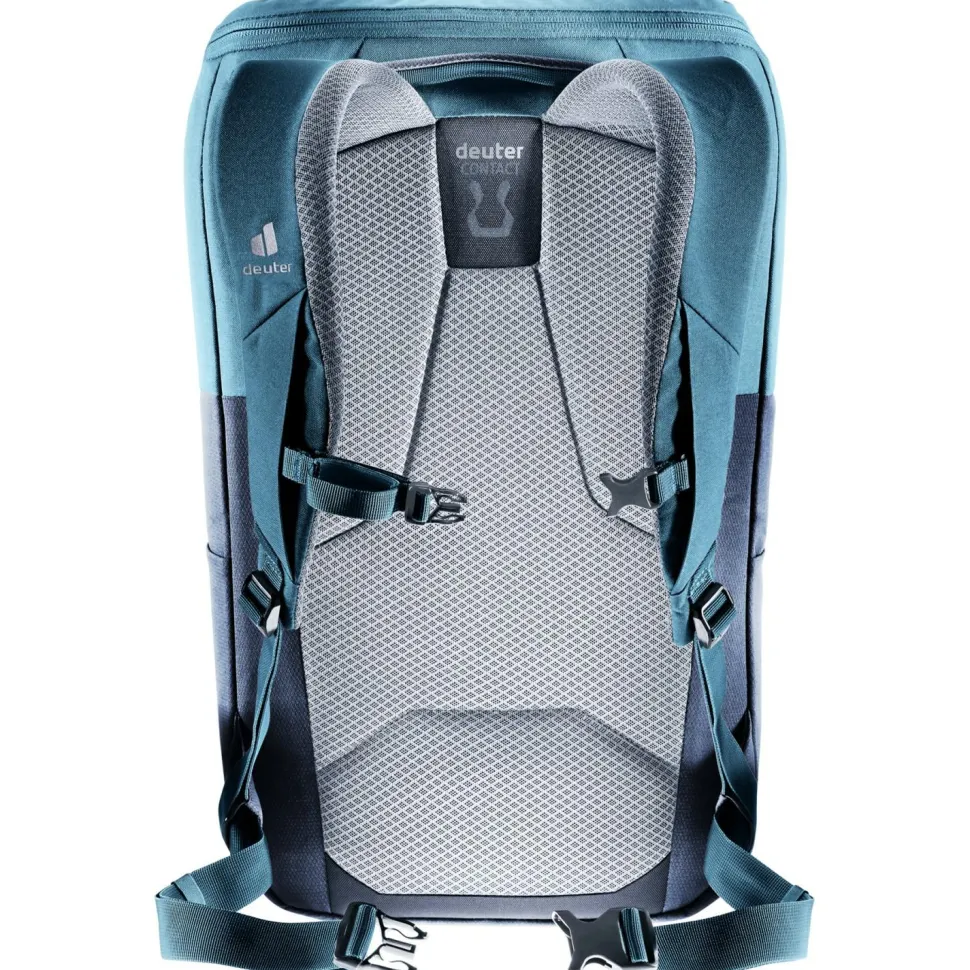 Der UP Stockholm 22 von deuter ist ideal für Sportler mit urbanem Lifestyle, die sich einen nachhaltig produzierten Rucksack mit einer guten Übersicht für ihre Sachen wünschen. Der sportive Daypack ist komplett aus recycelten PET-Flaschen nach bluesign-Standard hergestellt.Dank seines bewährten deuter Aircontact-Rückensystems ist der Rucksack top belüftet. Gepolsterte, ergonomische Schultergräger, ein abnehmbarer Brust- und Bauchgurt ermöglichen individuelle Tragemöglichkeiten. Elektronische Gadgets wie Smartphone, Notebook und Laptop finden in drei unterschiedlich großen, eigens dafür konzipierten Innentaschen einen sicheren Platz. Ein großes Reißverschluss-Frontfach, zwei Seitentaschen sowie ein Wertsachenfach innen bieten ausreichend Möglichkeiten, den Inhalt gut organisiert zu verstauen. Ein gepolsterter, stabiler Boden macht den UP Stockholm 22 von deuter standfest. Komfortables Packen ermöglichen der umlaufende Zwei-Wege-Reißverschluss und ein zusätzlicher Frontgriff.