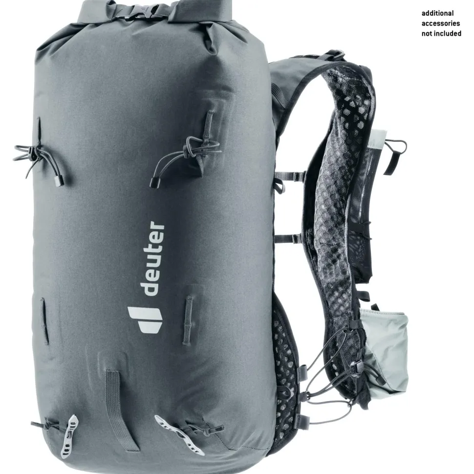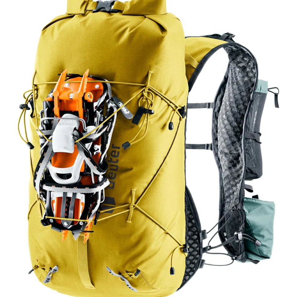 Durch das strapazierfähige Material eignet sich der deuter Vertrail 16 ideal für Hochtouren, zum Alpinklettern und Speed Hiking. Der Tourenrucksack ist aus robustem Material hergestellt und dank einer TPU-Beschichtung wasserdicht. Abgeklebte Nähte auf der Innenseite schützen Deine Ausrüstung gegen das Eindringen von Feuchtigkeit. Das Lite Tragesystem mit den ergonomisch vorgeformten Schulterträgern sorgt beim Zustieg zur Route für hohen Tragekomfort. Durch den praktischen Rollverschluss kannst Du unterwegs rasch auf den Inhalt zugreifen.