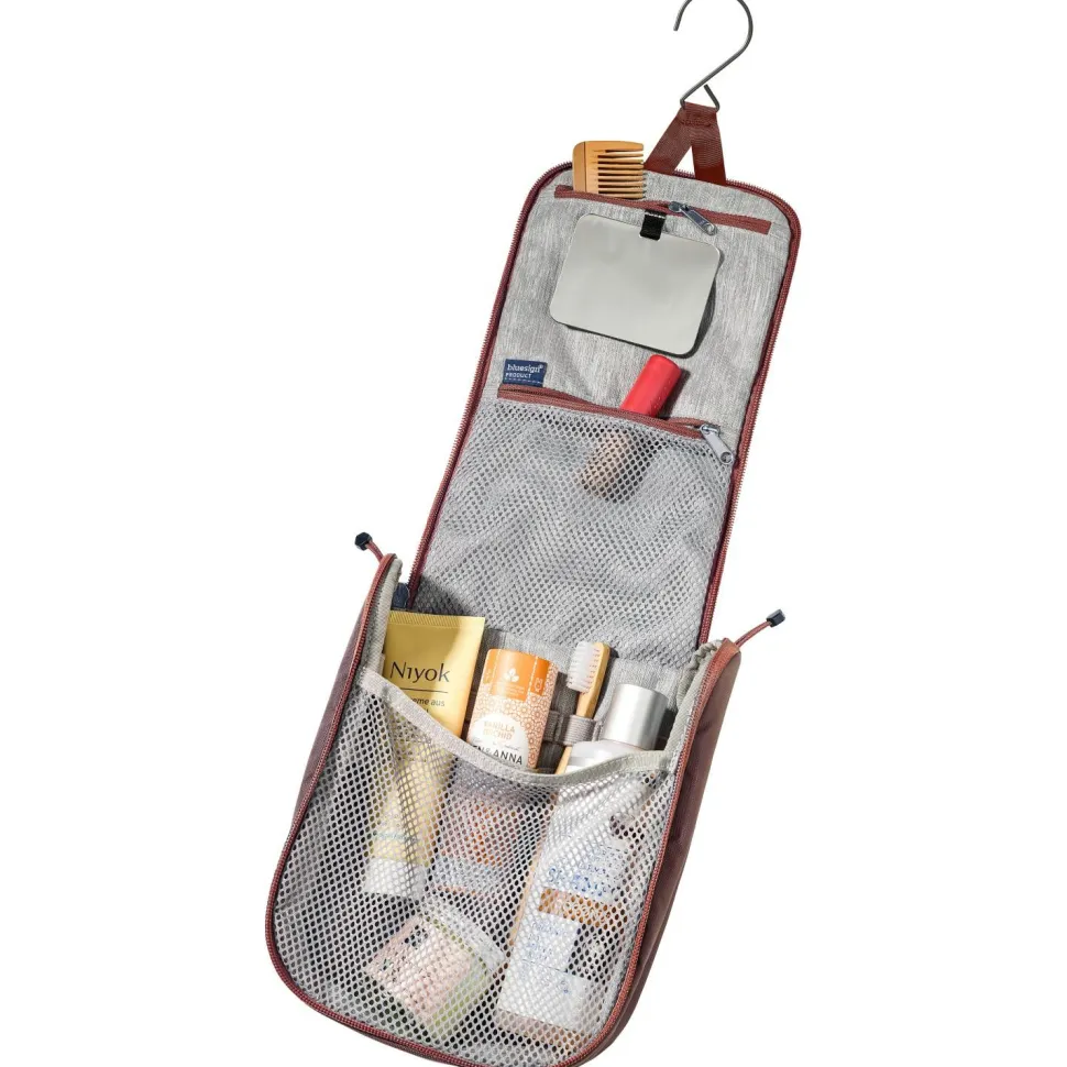 Der Wash Center I von Deuter ist ein geräumiger und praktischer Kulturbeutel mit umlaufendem Reißverschluss und abnehmbarem Spiegel. Sein robustes Nylongewebe bewahrt eine vollständige Hygiene-Ausstattung gut geschützt auf. Das große Hauptfach erlaubt schnellen und einfachen Zugriff auf den Inhalt. Eine Schlaufe an der Rückseite erlaubt das Einhängen der extra Netztasche. Zu den weiteren Details gehören zahlreiche Steckfächer, zwei Reißverschlusstaschen, das Elastikband mit Schlaufen und der verstaubare Haken zum Aufhängen.
