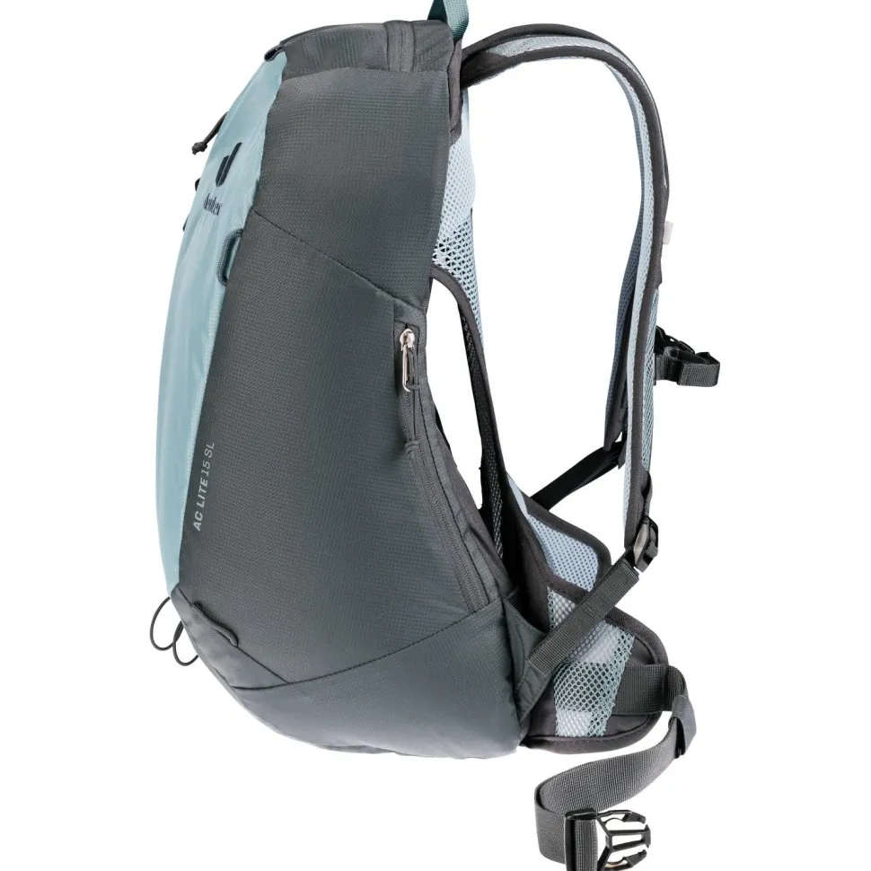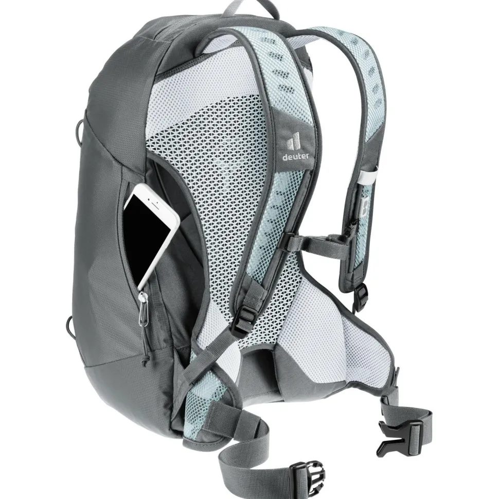 Für Tageswanderungen oder kurze Trips in die Stadt ist der Women’s AC Lite 15 SL von deuter ein treuer Begleiter.Dir passen die meisten Wanderrucksäcke nicht so gut, weil Du eher schmal gebaut bist? Mit der SL-Collection geht deuter auf Bedürfnisse und Proportionen speziell von Menschen mit kürzerem Rücken und schmaleren Schulter ein.Durch den belüfteten Hüftgurt und den höhenverstellbaren Brustgurt wird das Gewicht gut auf Deinem Rücken verteilt. Auch bei warmen Tagen oder schweißtreibenden Aktivitäten ist der Women’s AC Lite 15 SL sehr angenehm zu tragen, da Deine Rückseite durch den Aircomfort-Netzrücken von deuter ständig belüftet wird.Bei einer besonders fotogenen Aussicht oder wenn Du nach dem Weg schauen musst, kannst Du Dein Smartphone in Deiner seitlichen Smartphone-Tasche erreichen, ohne den Rucksack absetzen zu müssen.