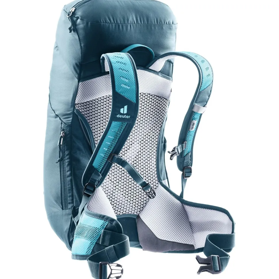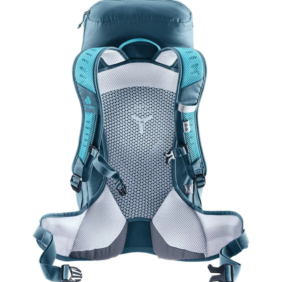 Du suchst einen leichten und bequemen Rucksack für Tagesausflüge in der Natur? Der Women’s AC Lite 22 SL von deuter ist dafür ein hervorragender Begleiter. Dir passen die meisten Wanderrucksäcke nicht so gut, weil Du eher schmal gebaut bist? Mit der SL-Collection geht deuter auf die Bedürfnisse und Proportionen von Menschen mit kürzerem Rücken und schmaleren Schultern ein.Das geringe Gewicht wird über ergonomisch geformten, gepolsterten Hüftgurt, den elastischen Federstahlrahmen und den höhenverstellbaren Brustgurt gut verteilt. Durch das deuter-Aircomfort Tragesystem mit dem Netzeinsatz am Rückenteil ist Dein Rücken gut belüftet und der Rucksack fühlt sich noch leichter an.Trotz seiner Leichtigkeit bietet der Women’s AC Lite 22 SL mit seinen vielfältigen Fächern Platz für die Dinge, die Du auf einer Tagestour brauchst.