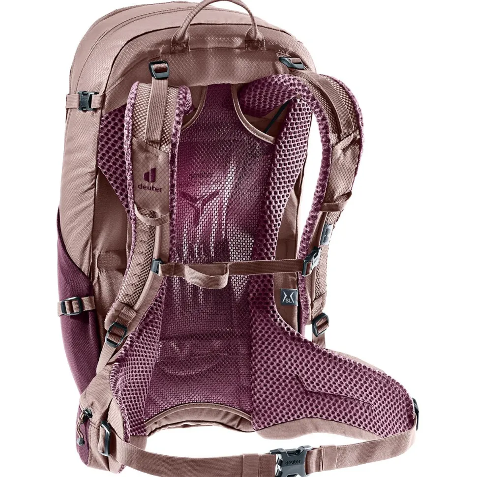Damit auch bei warmen Bedingungen kein unangenehm feuchtes Tragegefühl entsteht, ist der Wanderrucksack von Deuter mit einem Netzrücken ausgestattet. Hier kann frische Luft dauerhaft zirkulieren und für trockene Bedingungen sorgen, auch wenn die Schweißperlen bei anstrengenden Gipfelpassagen ins Rollen kommen.
