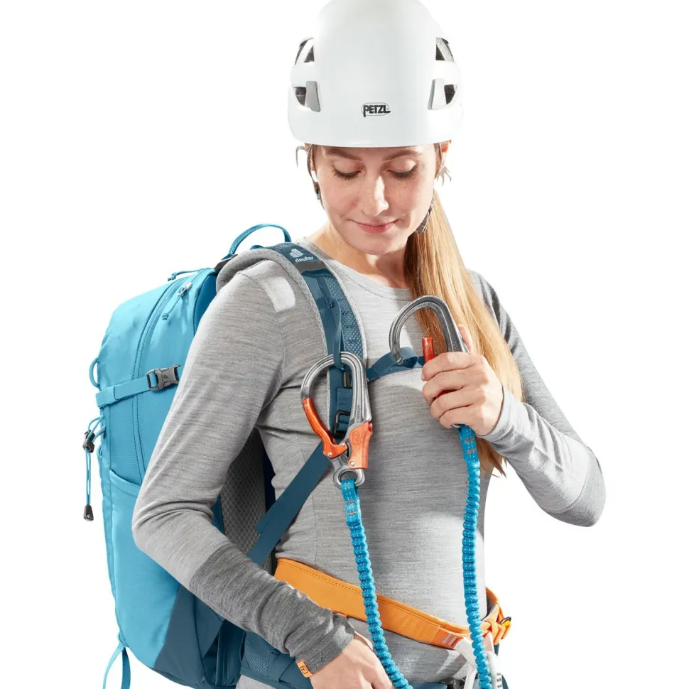 Variabel und verlässlich am Berg unterwegs: der Women’s Trail SL 23 Tourenrucksack von Deuter! Dieser sportliche Bergspezialist ist perfekt für Bergsportlerinnen und Klettersteiggeherinnen, die einen nah am Körper sitzenden, perfekt ausgestatteten und zugleich gut belüfteten Rucksack schätzen. Seine ergonomische Konstruktion sitzt nah am Körper und verteilt das Tragegewicht dank des flexiblen Delrin U-Rahmens optimal. Die robusten Materialien erweisen sich als sehr widerständig gegen Witterung und Abnutzung.