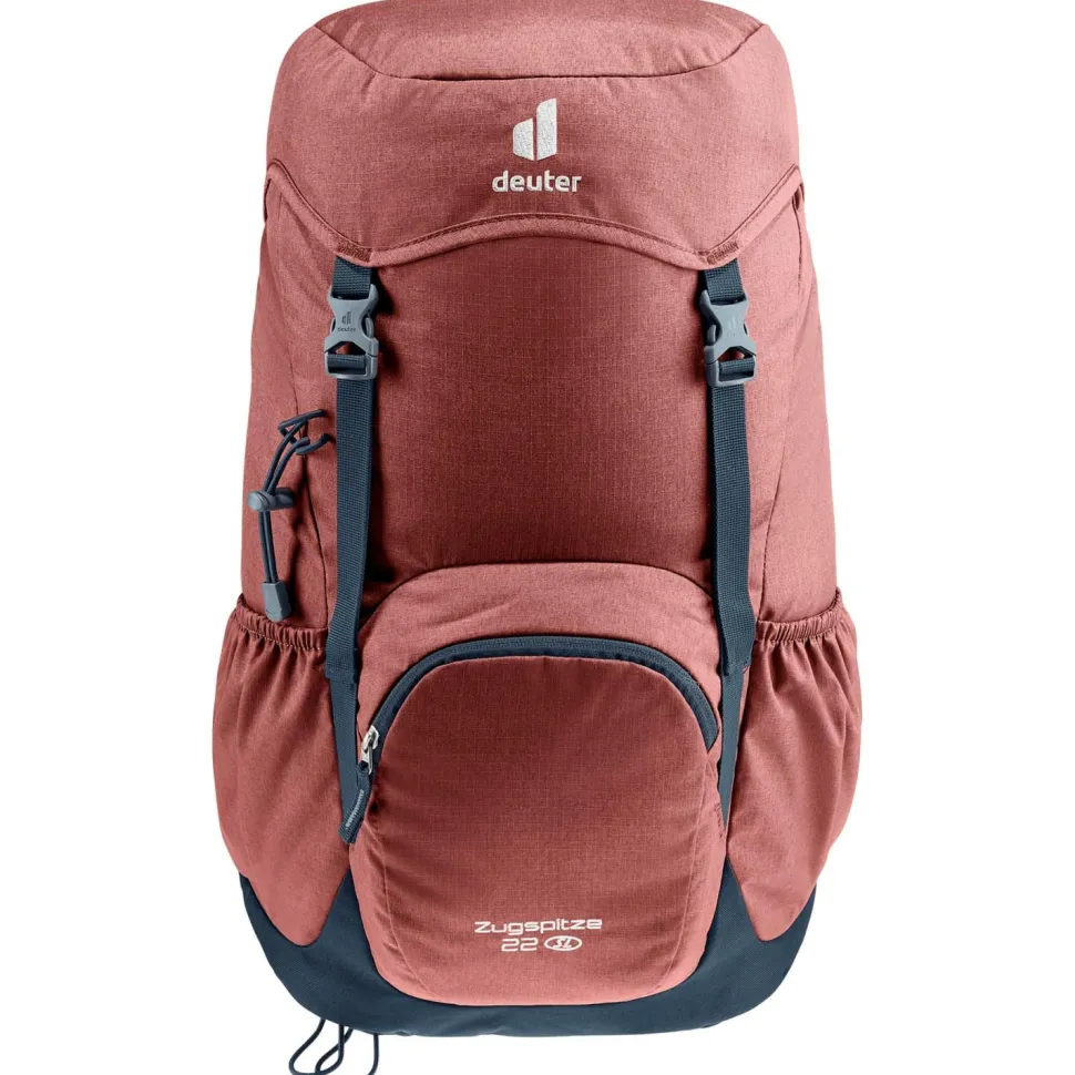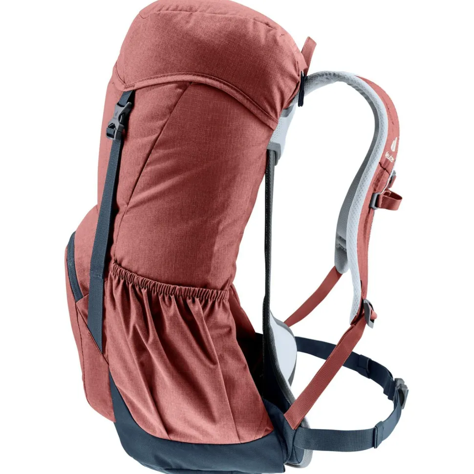 Der Women’s Zugspitze 22 SL Wanderrucksack von deuter ist ein echter Profi in Sachen Wandern. Der belüftete Rücken verhindert ein unangenehmes Tragegefühl bei schweißtreibenden Bedingungen. Durch den funktionalen Netzrücken entsteht ein Abstand zwischen Rucksack und Rücken, wodurch eine Luft-Zirkulation möglich ist. Die großen Seitentaschen des Rucksacks bieten viel Stauraum für Kleinigkeiten, die unterwegs schnell griffbereit sein sollen. Die Clips des Deckels sind sehr lang konzipiert, dass auch noch Kleidung oder andere Gegenstände unter das Deckelfach gespannt werden können. Zudem finden Wertsachen im Innern des Rucksacks einen sicheren Aufbewahrungsort. Die Wanderstöcke lassen sich an der hierfür vorgesehenen Halterung an der Außenseite des Rucksacks befestigen.