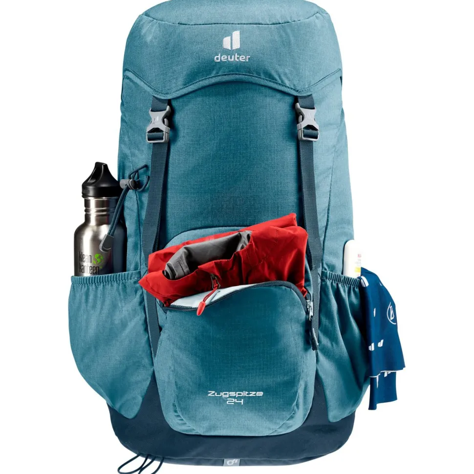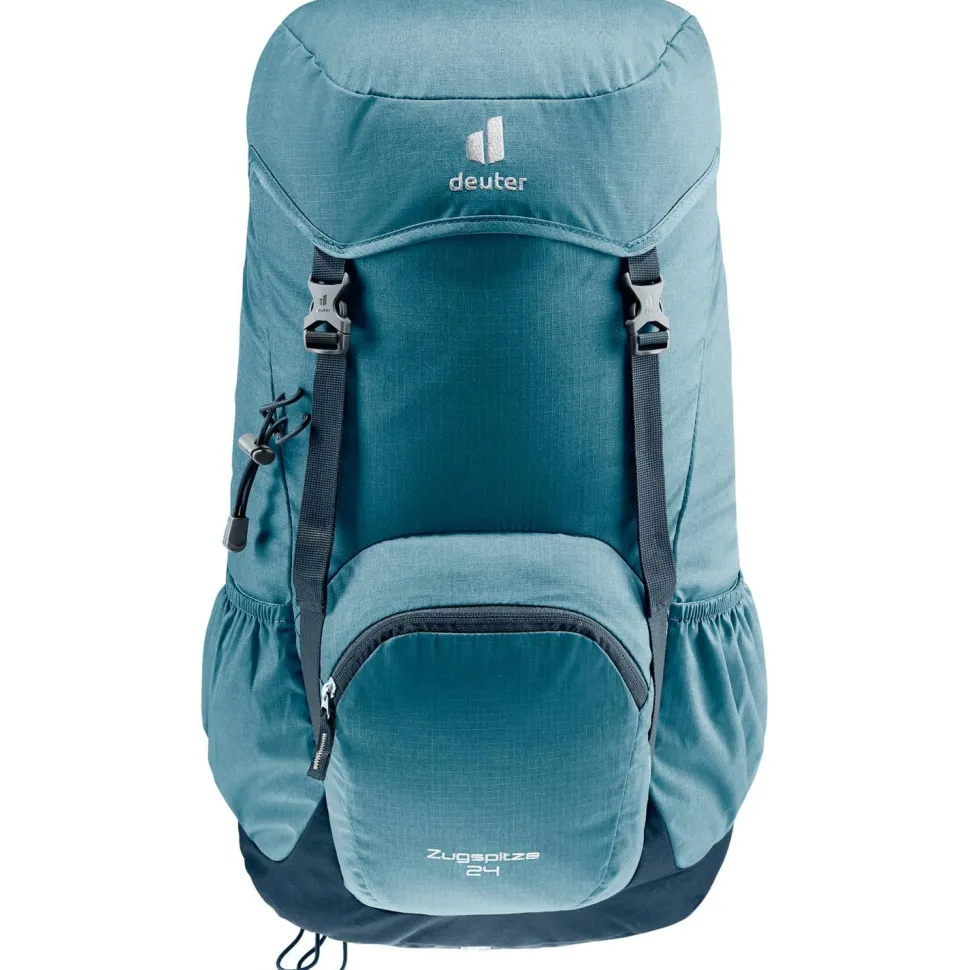 Der Wanderrucksack Zugspitze 24 von deuter ist ein top ausgestatteter Daypack für alle, die den Retro-Look lieben, aber auf modernen Komfort nicht verzichten möchen. Ein flexibler Rundprofilrahmen aus dauerelastischem Federstahl, gepolsterte Schulterträger sowie analog zur Beckenform modellierte Hüftpolster mit Bauchgurt sorgen für einen komfortablen Transport des Wandergepäcks. Das bewährte deuter Aircomfort Belüftungssystem sorgt auch bei heißen Temperaturen und schweißtreibenden Passagen für einen angenehm trockenen Rücken.Zwei seitliche Stecktaschen, ein großes Frontfach mit Reißverschluss, ein Wertsachenfach und ein Stretch-Innenfach erleichtern die Gepäckorganisation und bieten auf insgesamt 24 Litern komfortablen, sicheren Stauraum. Eine mitgelieferte Regenhülle ist im Bedarfsfall schnell über den Rucksack gezogen.Der Zugspitze 24 von deuter ist zudem mit zwei Deckelschließen ausgestattet, die zusätzliches Verstauen von Kleidung unter dem Deckel ermöglichen.