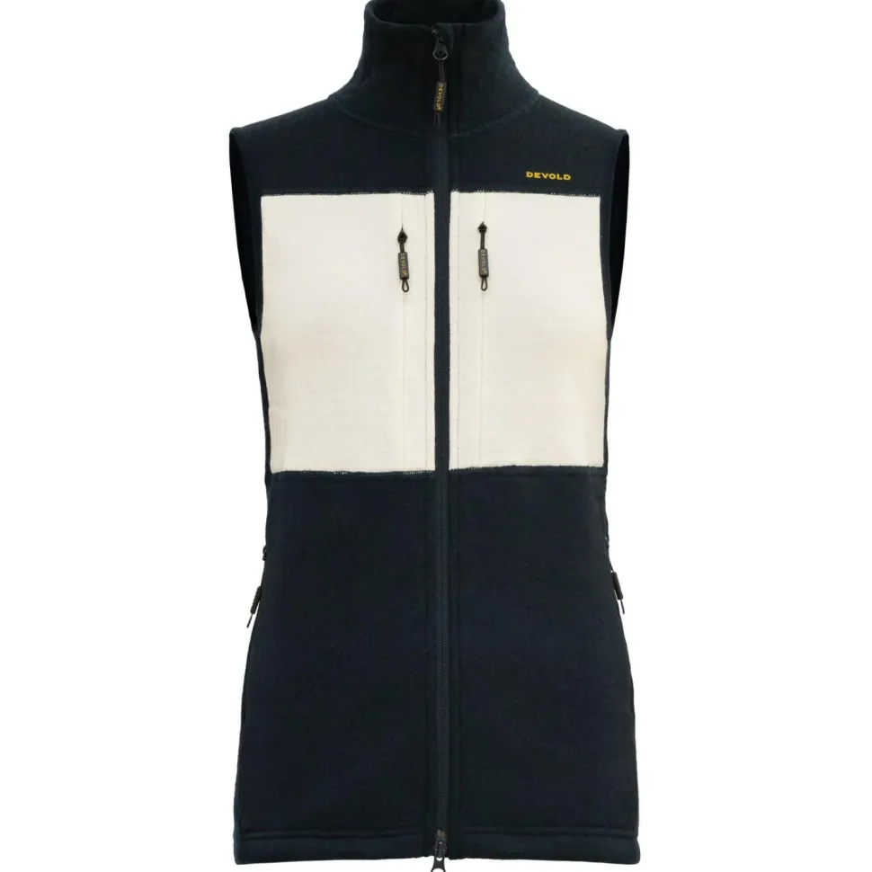 Die Women’s Egga Grid Merino Vest von Devold lässt keine Wünsche offen. Sie verfügt nicht nur über einen Zweiwege-Reißverschluss für optimalen Komfort, sondern zudem über zwei verschließbare Seitentaschen sowie zwei Brusttaschen mit Reißverschluss. Durch den Zweiwege-Reißverschluss bietet die Weste höchste Flexibilität und Tragekomfort. Durch die integrierten Taschen verfügt die Weste über ausreichend Stauraum, um wichtige Dinge wie Schlüssel, Handy und den Geldbeutel am Körper verstauen zu können.