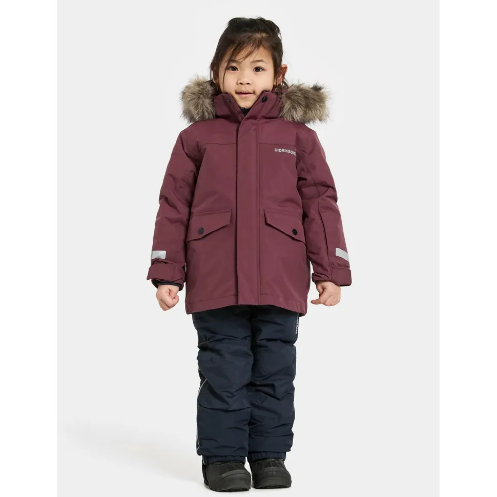 Für den Einsatz bei kaltem Wetter ist die Kid’s Bjärven Parka 4 von Dridriksons bestens geeignet. Diese Winterjacke kann aber nicht nur im Alltag getragen werden, sondern punktet vielmehr auch bei Freizeitaktivitäten, wenn das Thermometer deutlich unter null Grad anzeigt. Das Außenmaterial ist dabei wetterfest und kann auch anhaltenden Niederschlag problemlos abhalten. Im Inneren der Jacke sorgt eine hochwertige Kunstfaserfüllung zuverlässig für einen guten Wärmerückhalt.