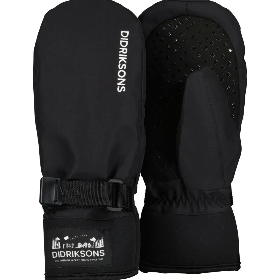 Für kalte Tage im Schnee sind die Kid’s Lovas Mitten von Didriksons bestens geeignet. Diese Handschuhe sind nämlich nicht nur wattiert und halten somit die Körperwärme zuverlässig, sondern sie bestehen auch aus einem wasserdichten und atmungsaktiven Material. Hierdurch kann keine Nässe von außen in die Fäustlinge eindringen und im Inneren entstehende Feuchtigkeit wird schnell nach außen abgegeben. Praktisch ist dabei auch das verstellbare Band am Handgelenk, das die Handschuhe verengt und somit für einen guten Sitz sorgt.