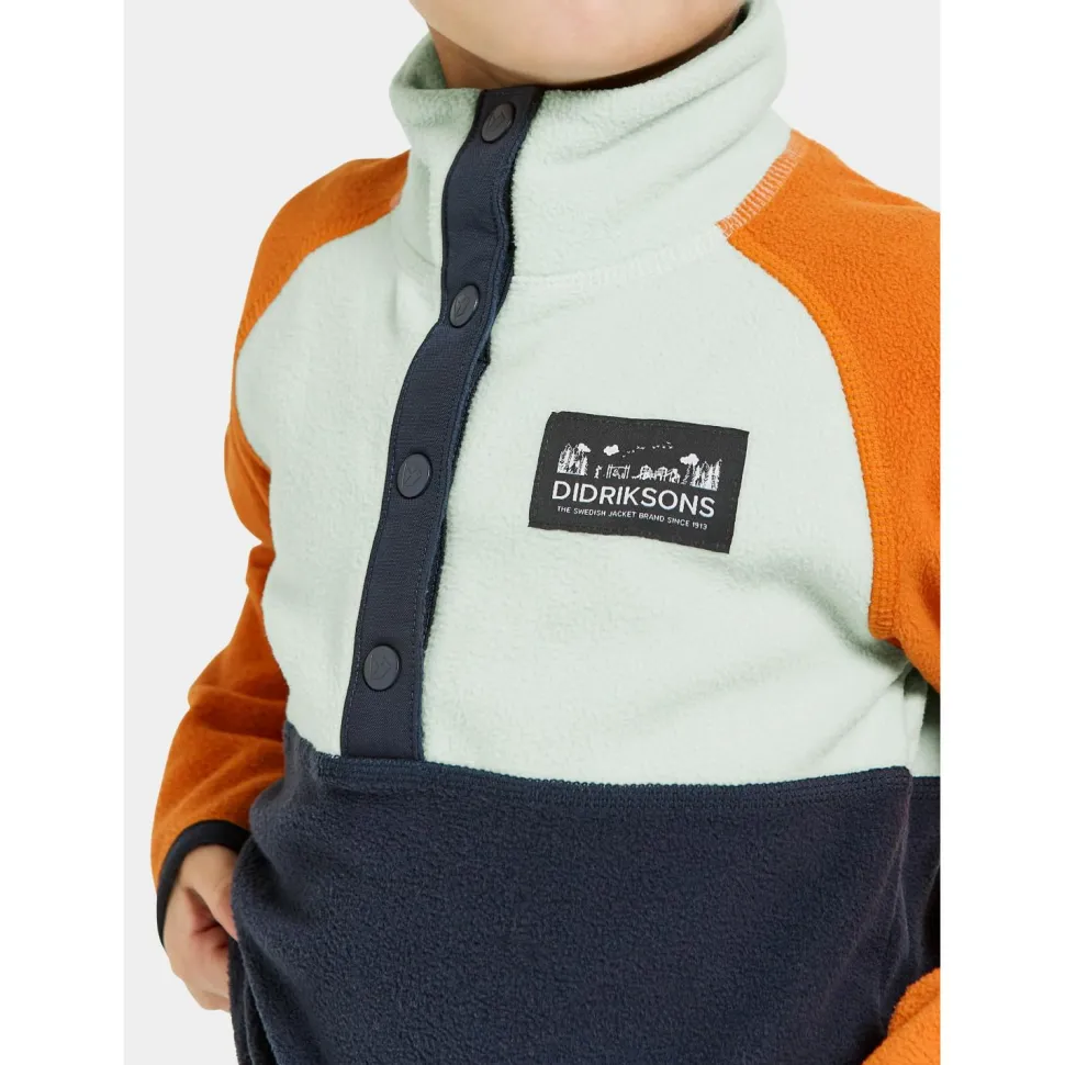 Der Kid’s Monte Half-Buttoned 4 von Didriksons kann mehr als nur gut aussehen! Der Fleecepullover kommt im coolen, farbenfrohen Colorblocking-Design daher und sorgt mit seinem kuschelig-warmen Fleecegewebe für angenehme Isolation. Der hohe Kragen umhüllt Hals und Nacken sanft und falls es doch mal zu warm wird, schafft die halblange Knopfleiste Abhilfe. Der sportlich-ergonomische Schnitt und der 4-Wege-Stretchfaktor sorgen zudem für tipp topp Bewegungsfreiheit. Klasse!