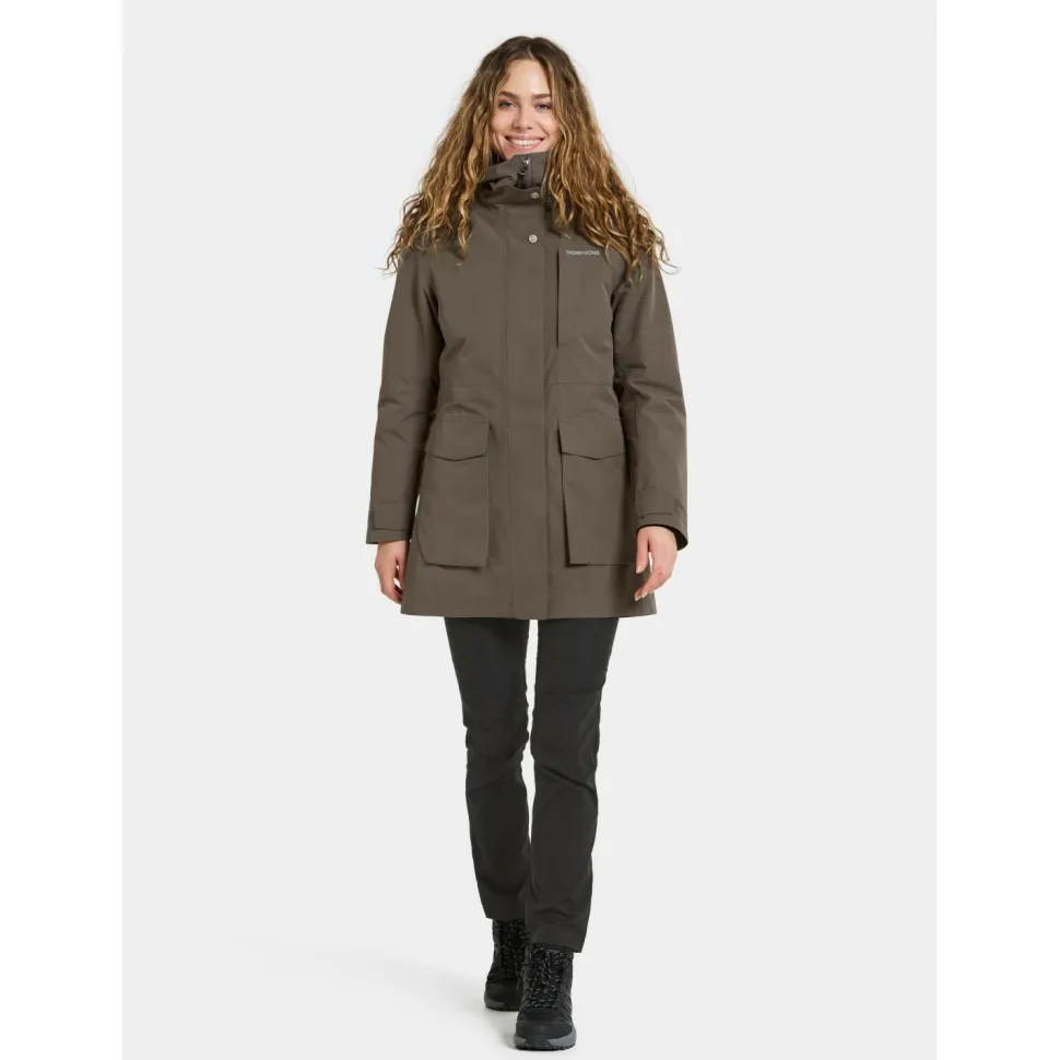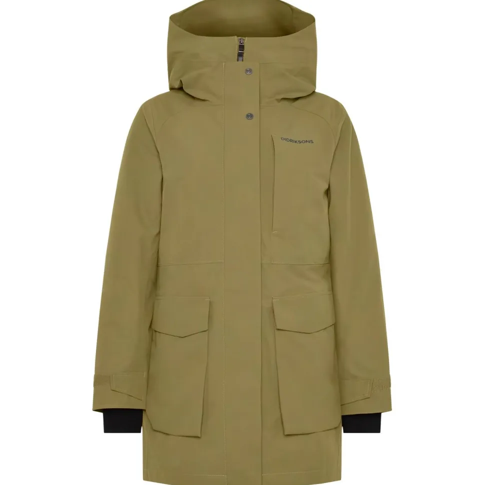 Mit dem Women’s Harriet Parka von Didriksons erhältst Du einen gleichermaßen wetterfesten und alltagstauglichen Mantel für kalte Tage. Das Außenmaterial ist bei diesem Mantel wasserdicht und atmungsaktiv gleichzeitig. Hierdurch kann nicht nur kein Niederschlag ins Innere vordringen, auch Feuchtigkeit, die im Inneren entsteht, wird schnell nach außen abgegeben. Zusätzlich sorgte eine angenehme Kunstfaserfüllung dafür, dass Deine Körperwärme zuverlässig gehalten wird.