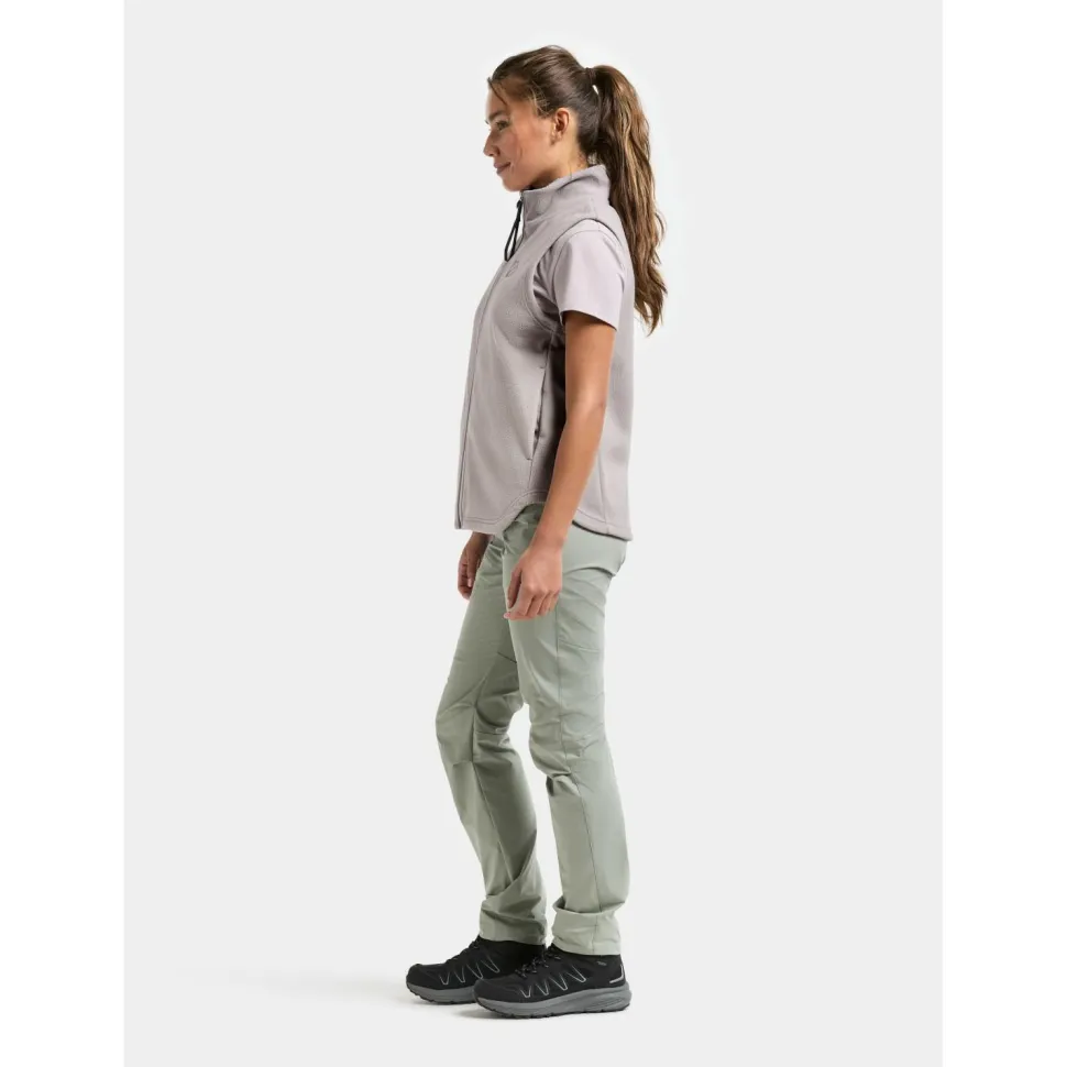 Sportlich, bequem und für eine Vielzahl an Aktivitäten bestens geeignet, das ist die Women’s Rim Vest von Didriksons. Diese Fleeceweste begleitet Dich beispielsweise beim Wandern und bietet Dir an kühleren Tagen ein Plus an Wärme. Durch den geraden Schnitt ist sie dabei sehr angenehm zu tragen und lässt ausreichend Platz für weitere Kleidungsschichten. Praktisch ist dabei auch der Stehkragen, der Deinem Hals zusätzlichen Schutz vor Zugluft und Kälte bietet. Darüber hinaus wurde die Weste mit zwei praktischen Taschen ausgestattet.