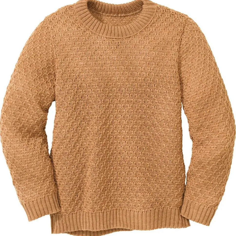 Der Kid’s Aran-Pullover von disana begleitet Dich im Alltag und in Deiner Freizeit. Das charakteristische Zick-Zack-Strickmuster stammt laut Hersteller wohl von den irischen Aran-Inseln. Gestrickt ist der Pullover aus feiner und weicher Merinowolle, die Dich bei kalten Temperaturen angenehm warm hält. Denn die großen Maschen und der voluminöse Strick schließen kleine Luftpolster ein, die zusätzlich isolierend wirken. Rippbündchen an den Ärmeln und der Rippbund am Kragen sorgen für eine bequeme Passform.