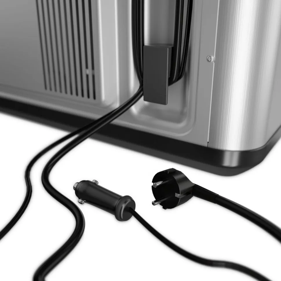 - Leistungsstarke Kompressorkühlung mit 230 V AC und thermoelektrischer Kühlung über die 12-V-Batterie