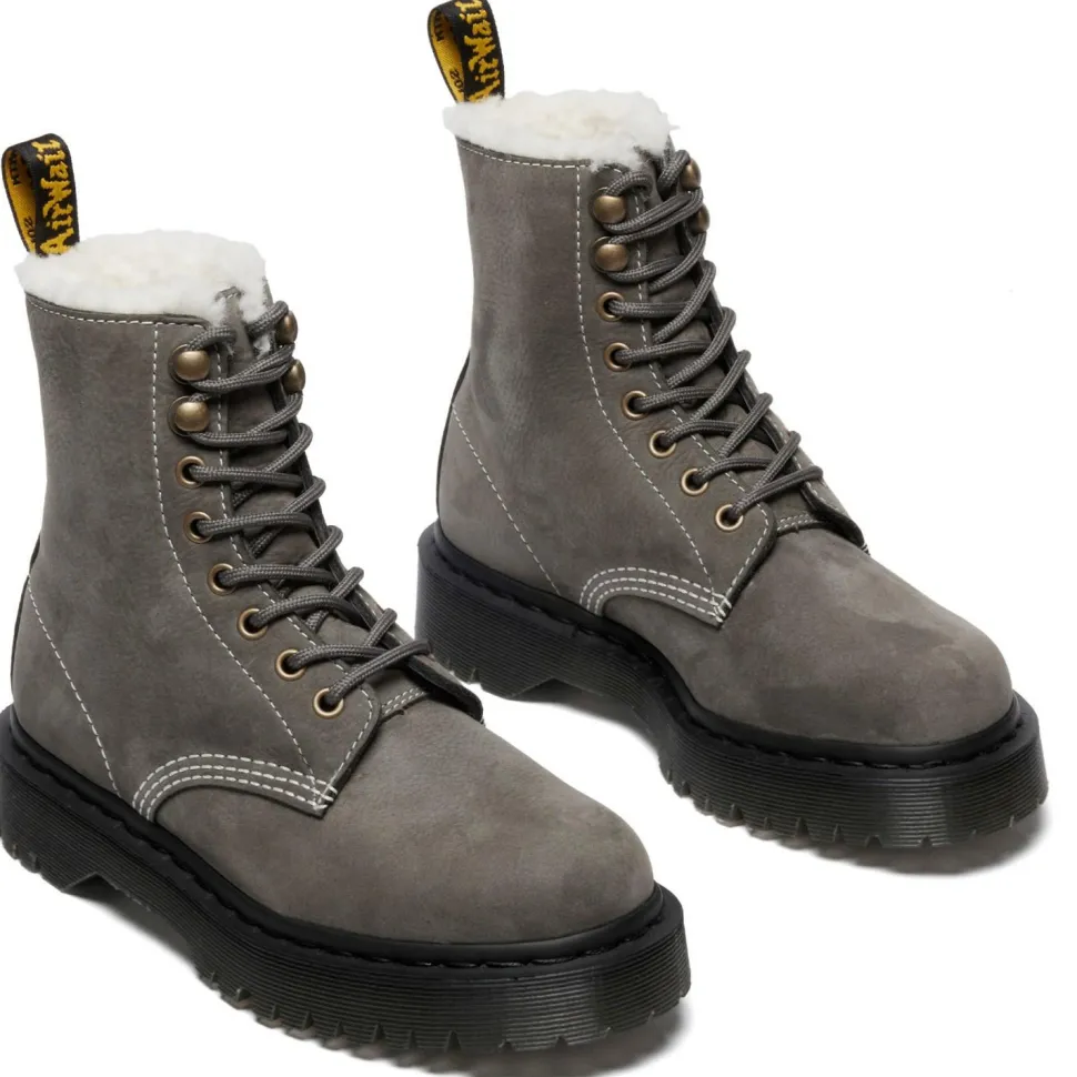 Der Women’s 1460 Pascal Bex FL von Dr. Martens ist ein echter Klassiker mit modernem Twist. Das Obermaterial aus Gunmetal Milled Nubuck WP ist nicht nur optisch ein Hingucker, sondern auch funktional: Es bietet eine wasserabweisende Oberfläche, die sich bei leichter Nässe bewährt. Das Leder ist leicht strukturiert und wirkt dadurch lebendig, ohne aufdringlich zu sein.