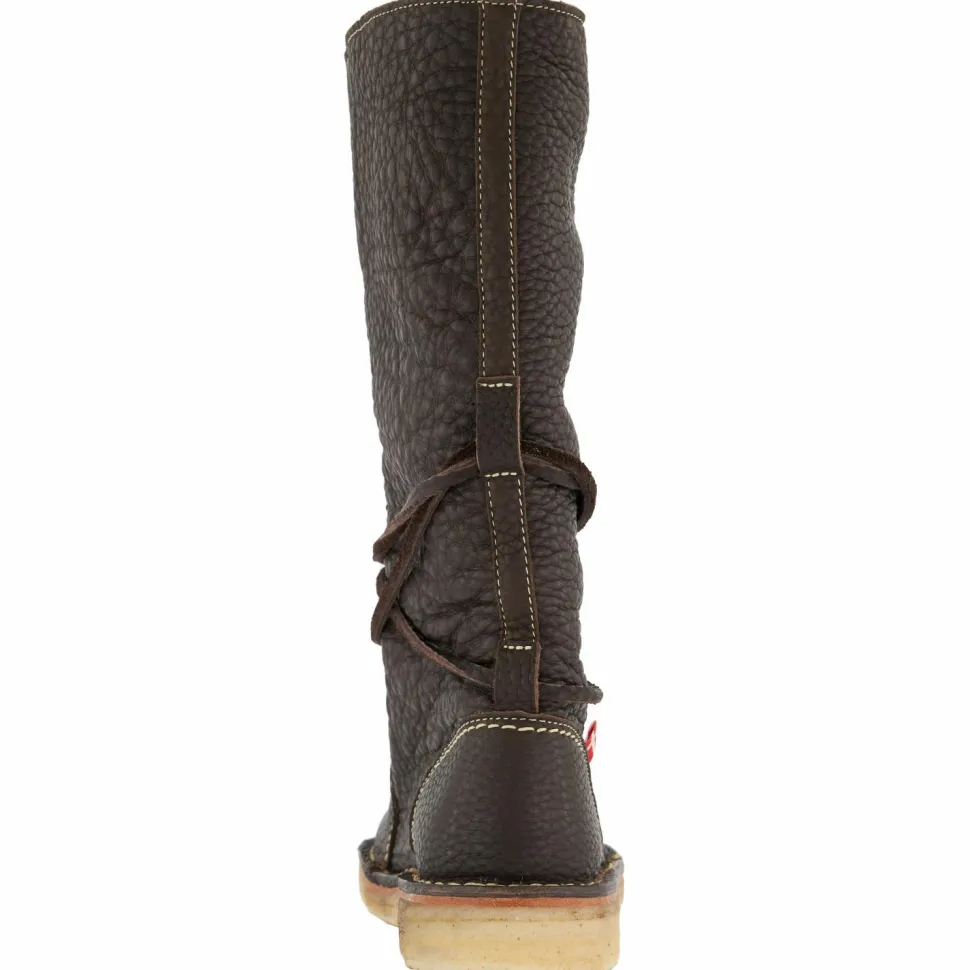 Man kann den Lederschuh zu einer Jeans tragen, aber auch zu einem schicken Kleid sowie Rock. Dabei punktet er durch eine angenehme Wärme, was er dem Lammfellfutter zu verdanken hat. Die natürliche Krepp-Gummisohle wärmt zudem von unten und ist leicht austauschbar, sodass der Stiefel eine hohe Lebensdauer hat. Die umlaufende Schnürung macht den Fuß im Schuh etwas stabiler, dient aber mehr dem modischen Zweck. Duckfeet empfiehlt, diese Schuhe eine Nummer größer zu bestellen aufgrund des Lammfellfutters. In der Regel fallen die Schuhe von Duckfeet allerdings normal aus mit einer mittleren bis breiten Passform.