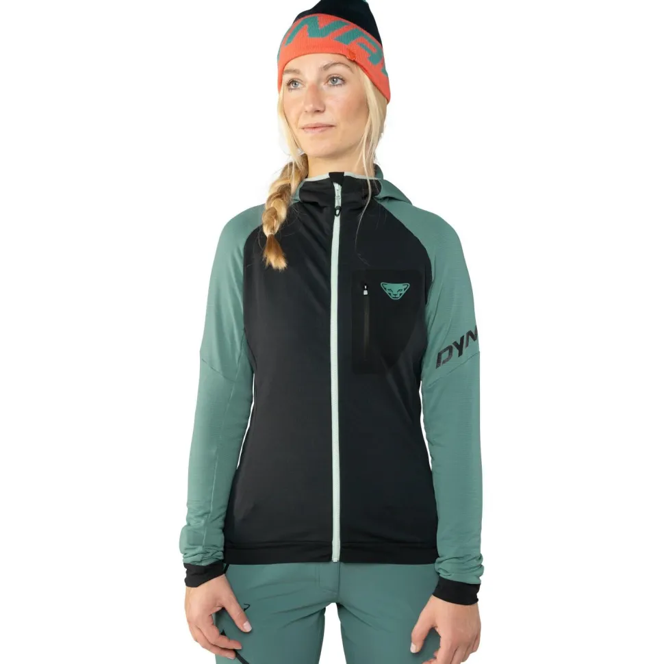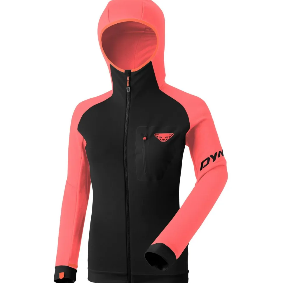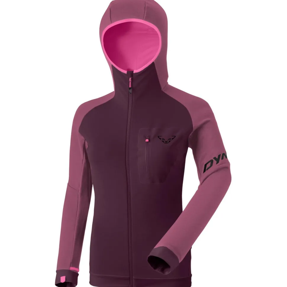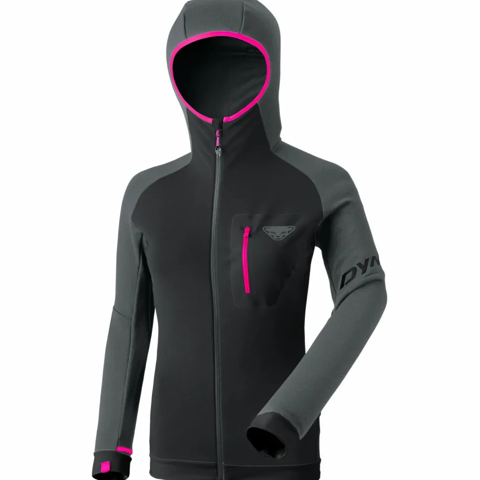 Ein sportlicher Look und perfekte Eignung für jedes Outdoor-Abenteuer – die Women’s Radical Polartec Jacket von Dynafit besticht durch Funktionalität und hohen Tragekomfort. Das innovative Polartec Power Grid-Gewebe bietet ein ideales Verhältnis zwischen Gewicht und Wärmeleistung. Gleichzeitig bietet die Jacke dank der hohen Atmungsaktivität auch bei schweißtreibenden Aktivitäten ein angenehmes Innenklima; außerdem trocknet das Material schnell. Feuchtigkeit wird schnell nach außen abgeleitet, damit der Körper selbst in Ruhephasen nach Anstrengungen nicht so schnell auskühlt. Die bequeme Kapuze schützt den Kopf bei Bedarf vor kalter Zugluft. Dank der Daumenschlaufen an den Ärmeln sitzt die Jacke immer perfekt ohne zu verrutschen. In der kleinen, mit einem Reißverschluss gesicherten Brusttasche der Women’s Radical Polartec Jacket lassen sich wichtige Gegenstände sicher verstauen, damit auf Tour nichts verloren geht.
