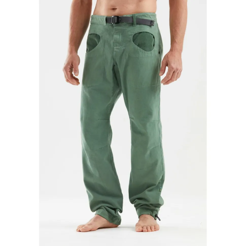 Die Rondo Belt-Boulderhose von E9 ist Deine zuverlässige Begleiterin am Fels und in der Halle. Mit ihrem elastischen Materialmix aus Bio-Baumwolle und 3% Elasthan bietet sie Dir genau den Stretch, den Du beim Bouldern brauchst. Der integrierte Gürtel sorgt für eine passgenaue Einstellung am Bund, während die verstellbaren Beinabschlüsse Dir zusätzliche Flexibilität geben – trage die Hose ganz so, wie Du magst.