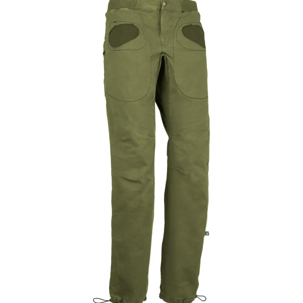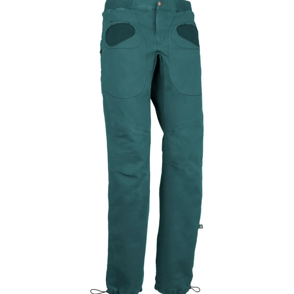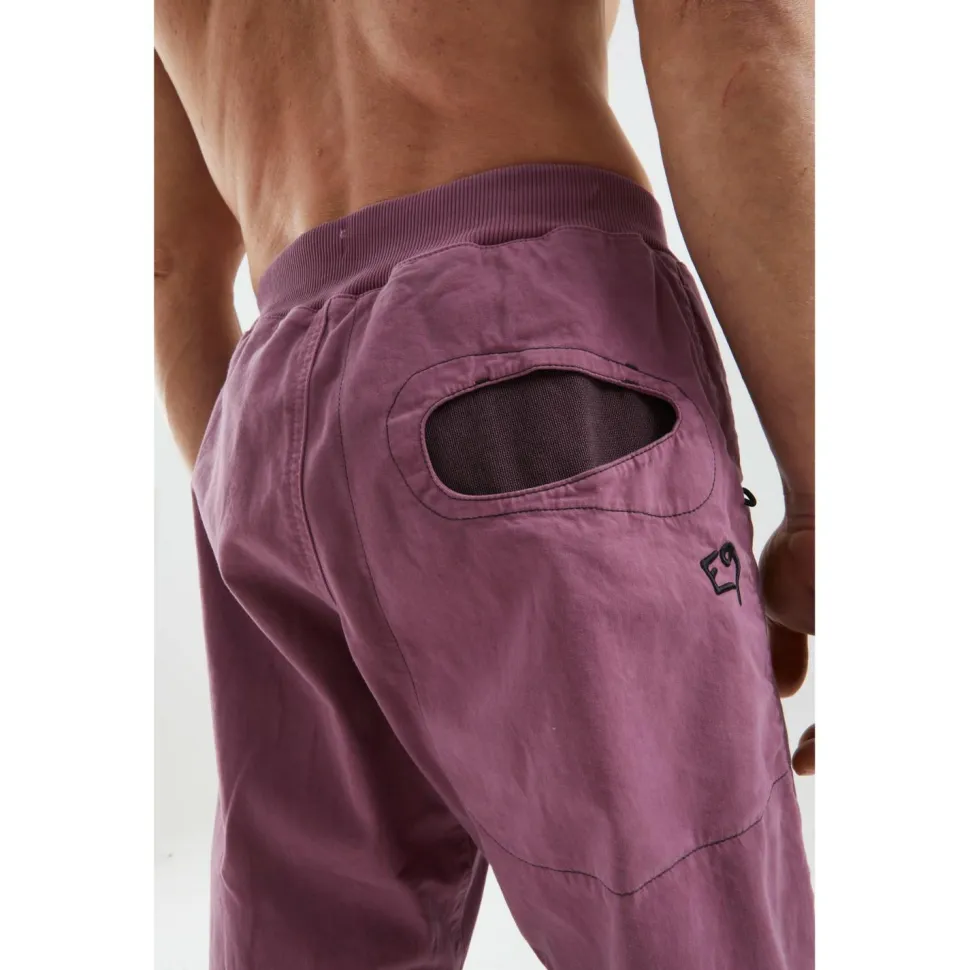 Die Rondo Slim von E9 ist eine etwas enger geschnittene Boulderhose aus Bio-Baumwolle. Diese fühlt sich angenehm weich und kratzfrei auf der Haut an und sorgt für ein optimales Tragegefühl. Zudem ist die Hose besonders elastisch und bietet beim Klettern viel Bewegungsfreiheit.