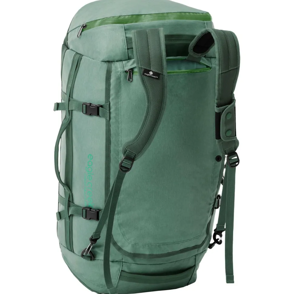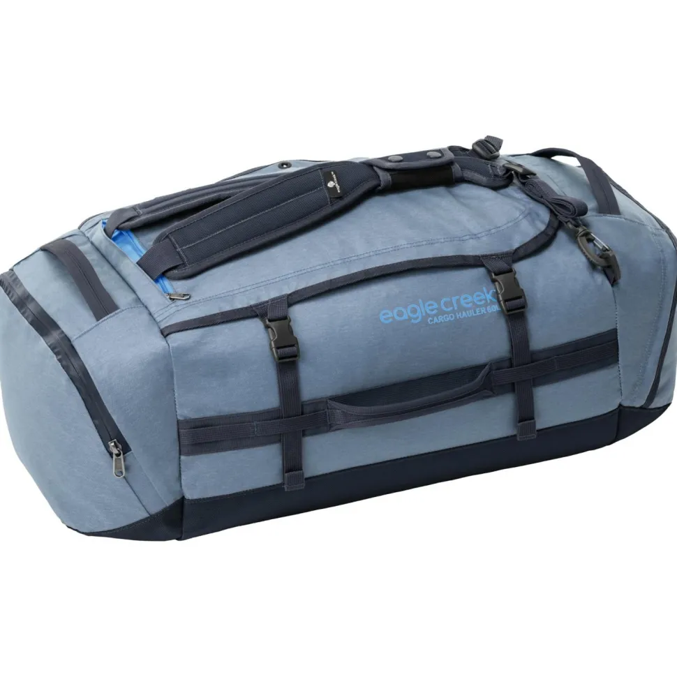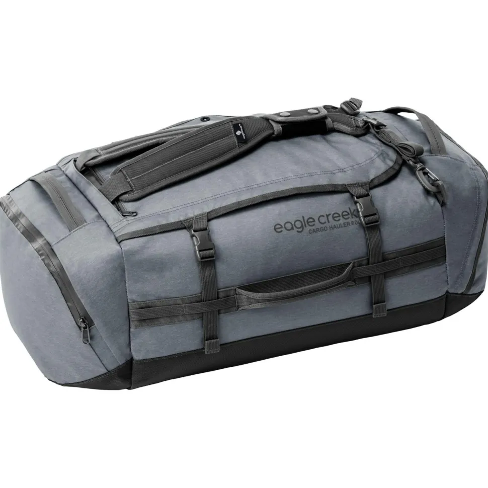 Die Cargo Hauler Duffel 60 L von Eagle Creek, ist eine ausgetüftelte Duffel für unterschiedlichste Art von Reisen aus zum Teil recyceltem Material. Die Duffel hat Rucksacktragegurte, welche sich in der vorderen Reißverschlusstasche verstauen lassen. Zusätzlich sorgen einige Tragegriffe für vielseitige Tragemöglichkeiten. Mit einem Schloss, lassen sich alle Reißverschlüsse an einem zentralen Verschlusspunkt verschließen. Das Hauptfach lässt sich weit öffnen. Zusätzlich sind noch zwei Seitentaschen vorhanden. Abdeckleisten an den Reißverschlüsse verhindern das Eindringen von Dreck.
